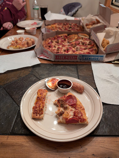 So I have a love/hate relationship with this Domino's location. It's the only one in our area first off, so if we want Domino's we have to go here. When they are on point, the pizza and service is great, I'd say 4-5 stars. The problem is they are rarely on point when we go there. There are times when our pizza(s) are completely messed up. I've gotten to the point where I try and confirm before leaving the store (we always do pick up) to ensure that they are correct however I don't always catch the screw ups each time. The issue with screwed up pizzas is you either catch it at the store and have to wait a long time for a new one or you catch it at home at which point your only option is to head all the way back to the storage or get a store credit. We end up always opting for the store credit because while we are in their delivery area, with traffic and construction it still takes a solid 10-15 mins to get there so by the time I get there and back with a new pizza, the existing stuff is cold. It makes me wish pizza places would offer to delivery the new pizza for free when the storage messes up.