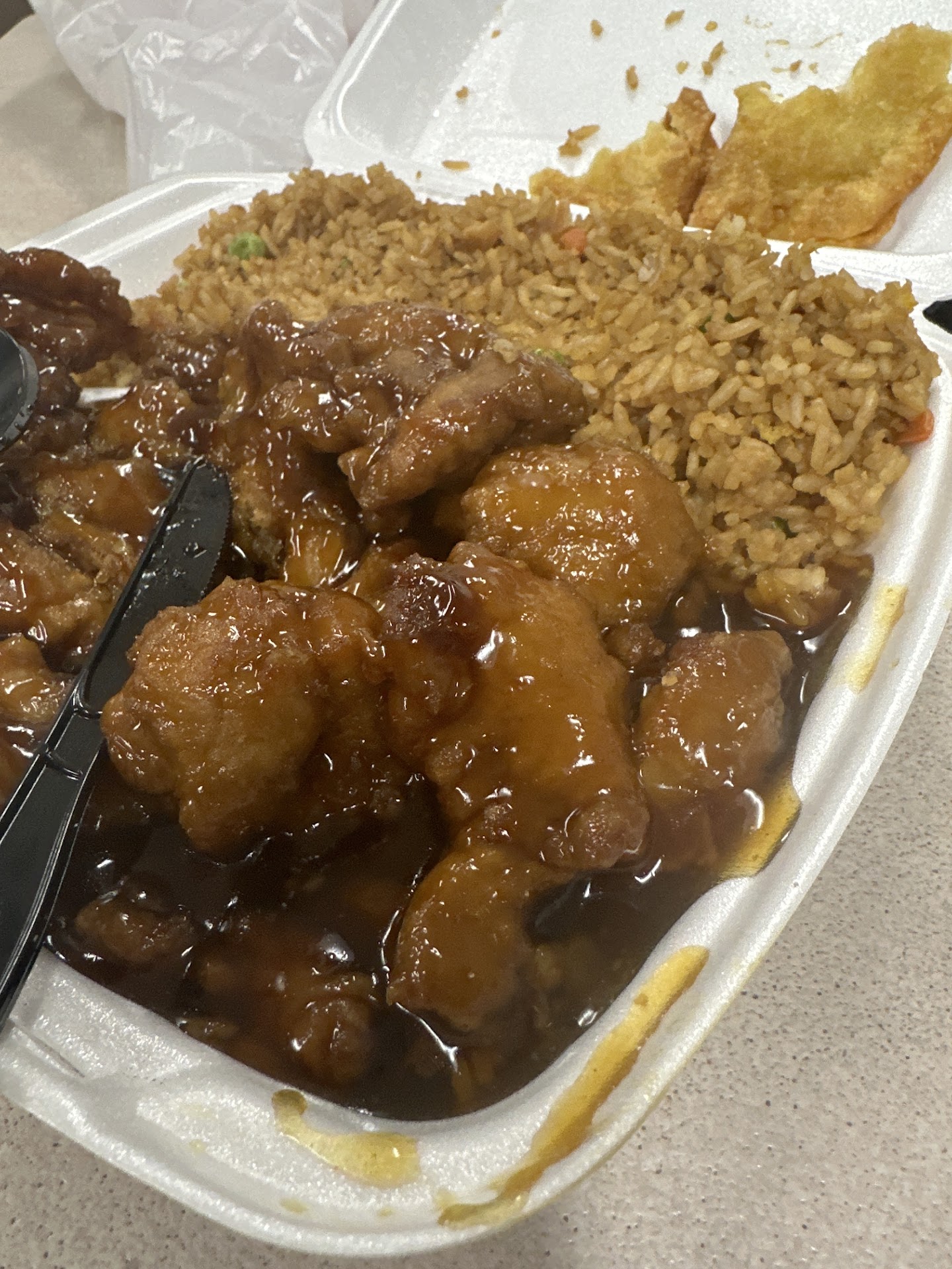 Read moreThis place actually used to be good, I don't know what happened or if they are continually changing cooks but half the time I get food here it's pretty inedible... The other half its fine... But just today I ordered sweet-and-sour shrimp with fried rice and egg rolls... The egg rolls were the only edible portion of this meal the fried Weiss was so dry I just threw it in the garbage instantly... And the sweet-and-sour shrimp was also very dry because it was mostly temper batter and the shrimps themselves tasted off I've never had fishy shrimp before... Do yourself a favour and eat here out of necessity only there are much much better options including McDonald's quite frankly... At least McDonald's food is consistent and you know what...
