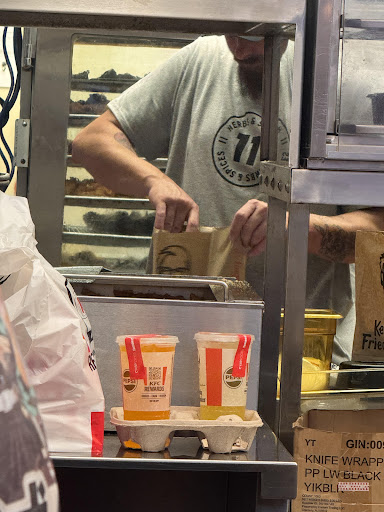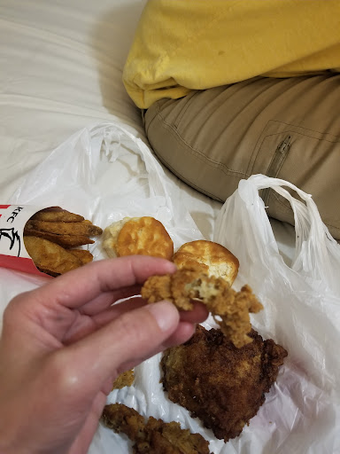 Read moreUsed to love KFC. I decided to order online and go pick up. I was told via the app/website that my order would be ready around 4:30. I arrived at 4:38. There is a sign on their window that says mobile orders should come inside to pick up their order from the quick pick up area. I walked in and did not find my order in the pick up area. That's a major problem. The very nice crew member asked for my name and tried to give me a bag and drink. The bag seemed light and I didn't order a drink. I stepped aside to allow others to get their orders if necessary. Another crew member walked out and asked my name again. She then told me I had to leave the lobby and go to the drive thru to get my order. I asked why that was necessary and if I had wanted to wait in the drive thru line, I wouldn't have ordered ahead. She said everyone had to vacate the lobby because it was closed to customers. I said, "Then why do you have a sign that tells you to come in and get your mobile order?" I got no response. So I went thru the line and was able to get my food within 10min. When we got home I found the following. We got 8 biscuits instead of 4 (bonus!) We got no dips for our chicken strips. The chicken itself dark and way over cooked. It was dry and practically inedible. We got 4 tubs of gravy.