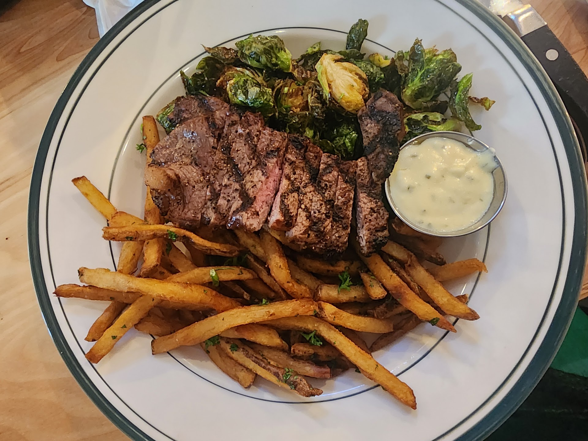 Read moreWe went here for an early dinner on a Tues. Unfortunately, right off the bat we weren't impressed with the very loud music, with speakers above your head everywhere so there really isn't anywhere quiet to get away from it. This is a tavern like place, where the menu is on the wall and you order from the counter and they bring it out. The menu looked amazing, so we had high hopes for the food and we were both very hungry. My husband ordered the cod and I ordered the bacon burger, we split the green chili fries. He had a beer, I had a martini. The martini wasn't horrible, but the olives were stuffed with something very weird, if it was supposed to be cheese, they failed. I will be honest, my husband said it was the best cod he's ever had at a restaurant, and he orders it a lot. Unfortunately the fries (both his on his plate and the green chili fries) were overly salted. My burger, the bun was not fresh, but had been slightly grilled (or nuked). I was really looking forward to a big patty of meat, we love Carlson Farms meat. It was very thin, and cooked unevenly (they never asked me how I wanted it which seems strange since they specialize in burgers). The bacon was okay, the bbq sauce was terrible. The crispy onions again, overly salty. I like salt, obviously I ordered a burger with bacon and blue cheese on it and fries with cheese, but this was ridiculous. The chili fries were good, but too much salt. We were never asked if everything was okay, never asked if we wanted water, and could barely talk to each other over the music. Another thing that was suspicious? The food came out super fast, way to fast for things to have been cooked fresh. So, Lake Burger, do you want to be a bar or do you want to be a restaurant. We were just lucky there were only a few people in there so we didn't have to compete with 20 other people talking loudly to each other...