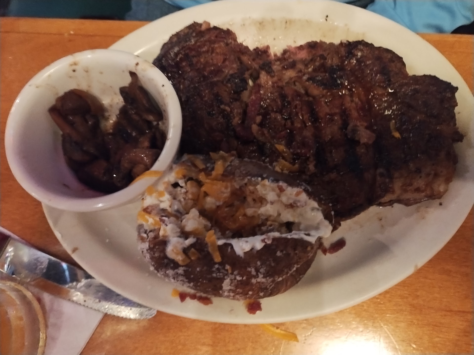A bit pricey but well worth it. We had to wait about 30 min. We went on a Sunday about 430-5 . It was packed. Once we got a text to come in, they had us at a table right away. Just a few moments later a waitress came and got our drink & appetizers order. She brought a basket of rolls with both whipped butter and the whipped cinnamon butter. So good 😊 We ordered potato skins and fried jalapeno n cheese bites It took only about 5 minutes to bring our drinks . sprite, blue crush lemonade and a tall blue moon beer. That's when the waitress took our dinner order. Hubby had 18oz Porter house steak with mushrooms on side, salad and loaded baked potato kids meal of steak bites & steak fries country fried steak & mashed potatoes with white gravy ( can order brown gravy ) and an order of corn Appetizers came out in about 10-15 minutes. Potato skins were great for the most part , lots of bacon. There were plenty of the " rattlesnake bites" The atmosphere is fun and the staff are so friendly & all are willing to help customers to make their dining experience wonderful. A few people had birthdays . the staff would get together and clap as they headed to their table. Then Introducing the birthday person so the whole restaurant could say hi & Happy birthday. The staff encouraged everyone to say " yeehaw" . Granddaughter enjoyed that part. About 15 minutes after receiving appetizers our dinners came. Granddaughter loved the steak bites Country fried steak is HUGE & tasted fantastic could have used more gravy. Porterhouse was just as big, very tender. It was excellent along with the loaded baked potato. Neither of us could finish our dinners. Definitely fills you up with lots of leftovers. We ordered another sprite and blue moon beer. The waitress brought it within a few minutes. We ordered one of the brownie desserts in order to try it. That was about the only disappointing thing. Brownie was hard at first even with ice cream on top melting. It was thin and very crispy around the edges. One thing we won't order again. The staff were amazing!! As I said it was packed however they worked well as a team. Our waitress was kind, engaging and attentive. When you leave most team members you encountered on the way out were super nice, each one would thank you for coming and wished you a good night even though they were busy. This restaurant has one of the best staff I've encountered. For the 3 of us it was $110.00...