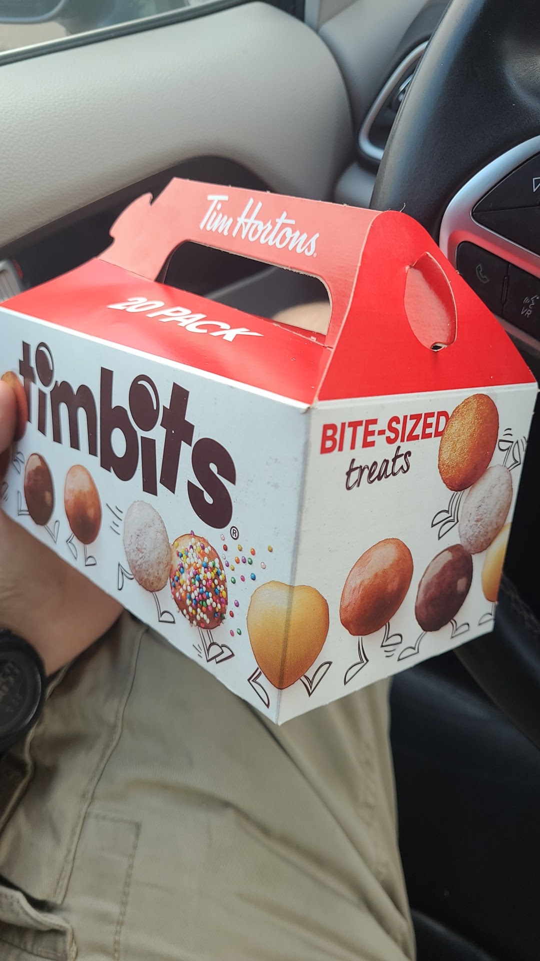 Read moreThis place used to have great service and quality but has substantially gone downhill. I went there for a single iced coffee, that's it, with only cream, nothing fancy, nothing else. I went during my 15 min break which was a huge mistake. Normally they're super quick and it's only a few minutes from work. When I pulled in, there were only 2 cars ahead of me. 2 cars. That's it. My wait time in the drive through for a simple iced coffee was 15 minutes. i was like 10 minutes late getting back to work. So I'll never do that again. Then today I went for 2 breakfast sandwiches and 2 coffees for me and my husband. The coffee is hit or miss these days, and if I were to ever go to Tim Hortons again, which at this point is highly unlikely, I'm ordering my coffee black and adding cream at home. Sometimes they put way too much creamer in it or they'll put sugar in it. I never ask for sugar in it. I don't like sugar in it and I can't drink it with sugar. Then when I got home, I bit into my sandwich and the egg popped and was a green-greyish color inside and was tasted very off. And this was 7:39 in the morning, when I would expect everything to be fresh but that egg was definitely old. I threw away the sandwiches and went to McDonalds. I don't know how you can serve food like...