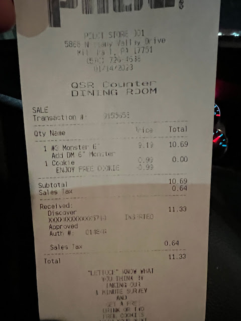 Read moreI've visited subways all over the country and I usually go for the same sandwich roast beef and carved turkey occasionally I'll slot one for oven roasted chicken. At most it gets run as a double meat, but here, they wanna hit me for a whole extra sandwich. But what really drove this rating home is the lack of pride the employees have in their jobs. While directly, it isn't your fault, this is true, but just to say "it's not my fault"..... you're wear the uniform, standing behind the counter, you represent your company, that means it is your fault. Take some pride and represent the team...