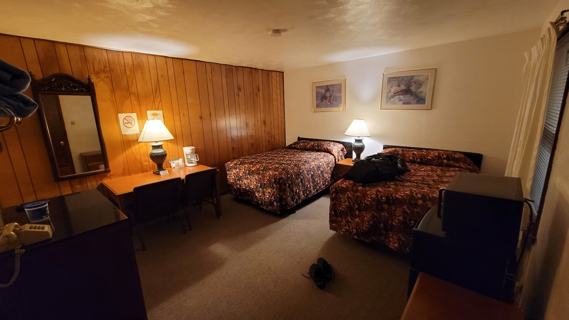 Read moreStopped for one night passing through and didn't mind the "old" style but overall it was terrible because noises kept waking us up all night plus the non-smoking room smelled like someone had smoked in it not so long ago. We're not light sleepers and some kind of structural tapping noise in the wall kicked up every so often and was loud enough to wake us both up. That along with the fridge motor would kick into gear loud enough that we had to unplug it, I got by with making cotton ball ear plugs. Bottom line if $60 is all you can afford, you'll make do, but if you can swing the $30 or so more comfort inn I think that's a better bet for a good night sleep. As a motel you're room is has three adjacent rooms so anytime someone closes a door, flushes the toilet, runs the shower, you hear it with the thin walls. The folks were nice at check in, the towels though paper thin were clean, place looked and smelled old but taken car of so normally we don't mind but that with the fact we were woken up almost every hour is why the low stars. You'll survive but you might not sleep well without ear plugs...