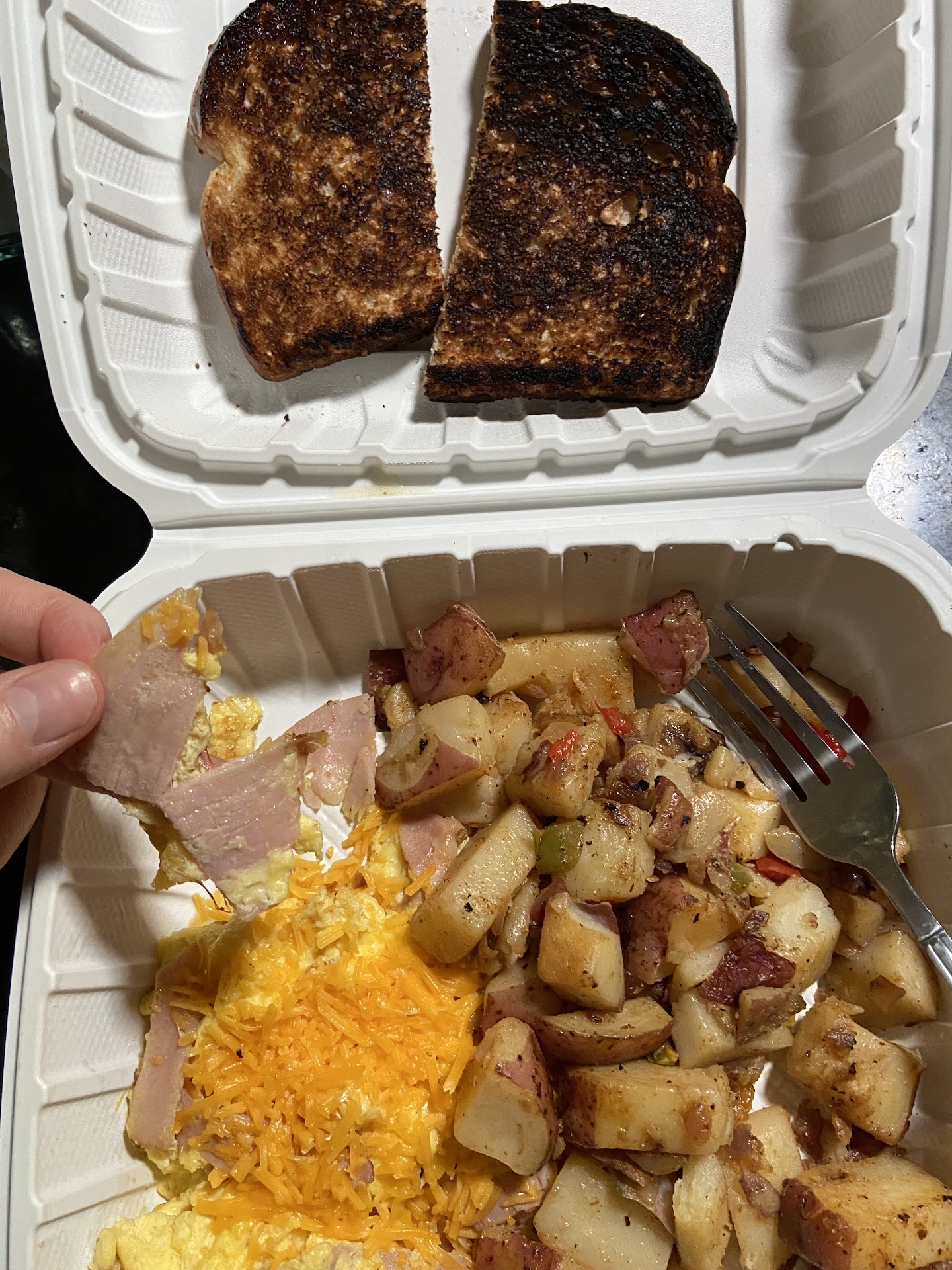Read moreWe ate there on a Sunday evening it was not very busy. Hostess was talking ( flirting) with a customer and let us stand and wait for 5 minutes until am man, possibly the manager who was clearly frustrated with her called her name and pointed at us. She rollers her eyes and med us to a booth that had 2 placemats ( there was 3 of us) she said she’d return with another place setting , she never did. My husband had maple syrup puddled on his side but they brought and extra napkin so he could clean it off. The waitress herself was sweet , quiet and not super attentive but she was fine. We found it so odd that she wheeled our soup and salads and the entrees out on a cart. Not a food cart more like a busboy style cart and one entree was on the bottom shelf. Honestly it was off putting, I’d rather she made 2 trips. The cup of soup was tasty ( vegetable beef) but the veggies were huge, would have been to huge for a bowl but in a cup the slice of carrot covered the whole top , not sure where they found such a massive carrot. All the vegetables were cut way too big to enjoy without awkwardly cutting with spoon. The rest of food was good but not good enough to return...