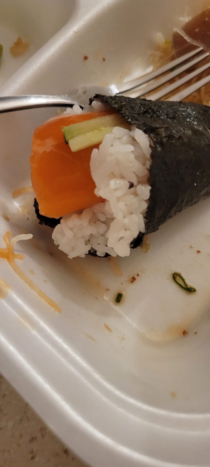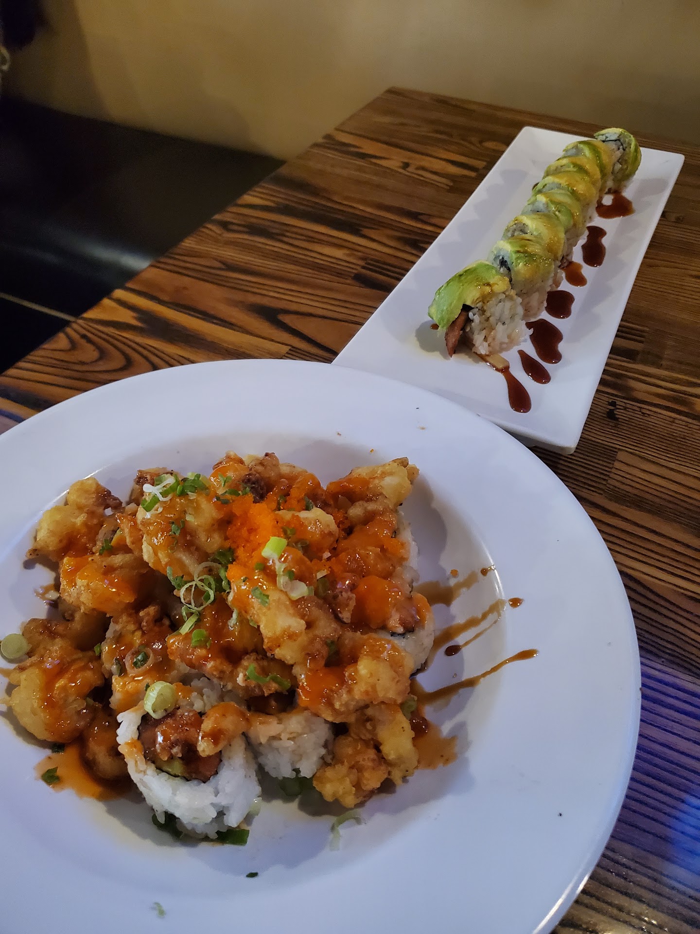 Read moreThis place is great. Huge sushi menu, quick service, and really big pieces of fish in the classic rolls. They make some unexpected choices--the classic rolls (salmon roll, tuna roll, etc) is fish, rice and nori, nothing else. I don't know enough to say if that's more traditional, but it's not something I've seen elsewhere. My preference is that they have at least some avocado in them, maybe a little cucumber to fill it out, but it IS pretty fun to get a roll THAT packed with chunks of fish. Speaking of, the fish is always perfectly chilled--that ideal sushi temperature of not not cold but not warm; having had warm raw fish from a sushi place before, it really deserves to be commented on.
