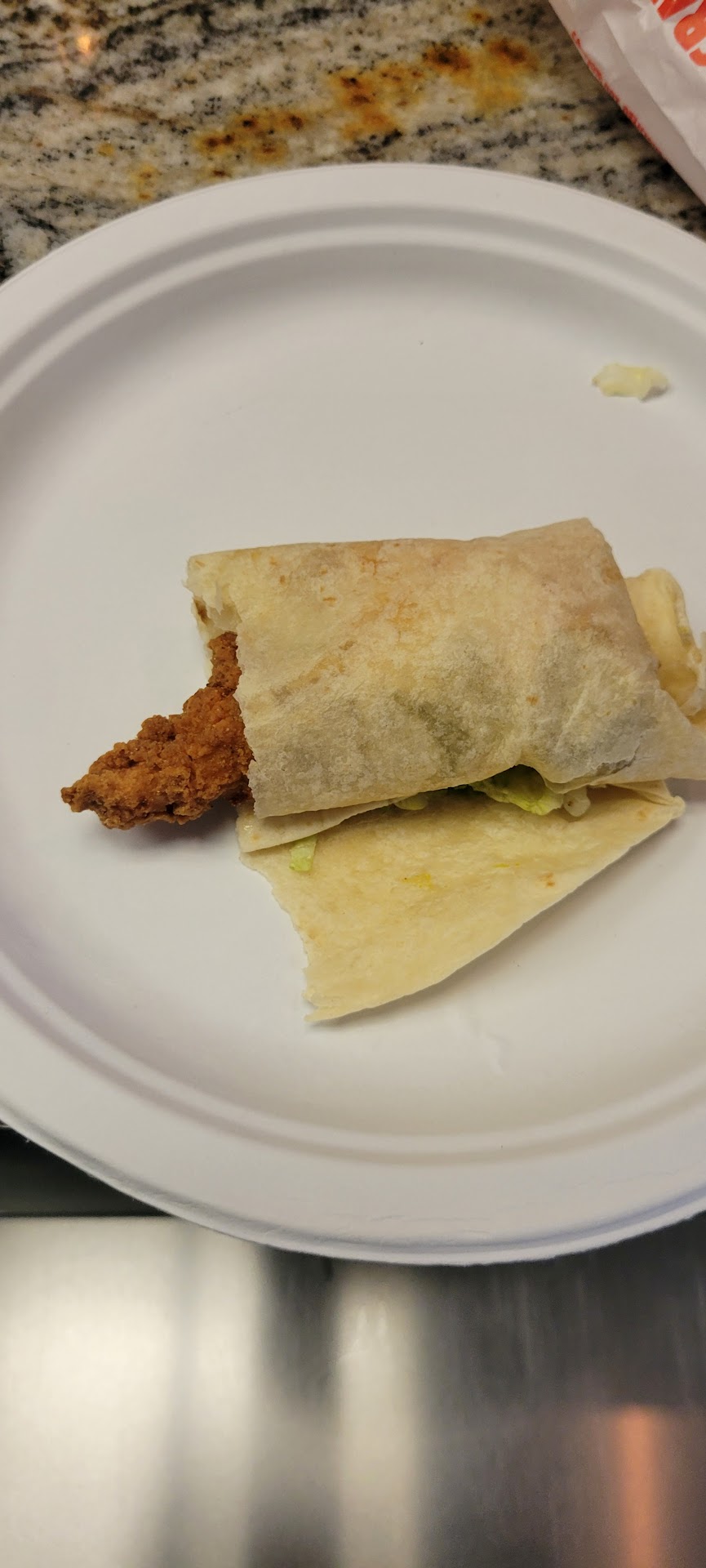 I ordered Jack's crispy spicy chicken wrap, only to get home and find that the tortilla had been ripped off to accommodate the size of the chicken inside the wrap. Does this look appetizing? Does this look acceptable?