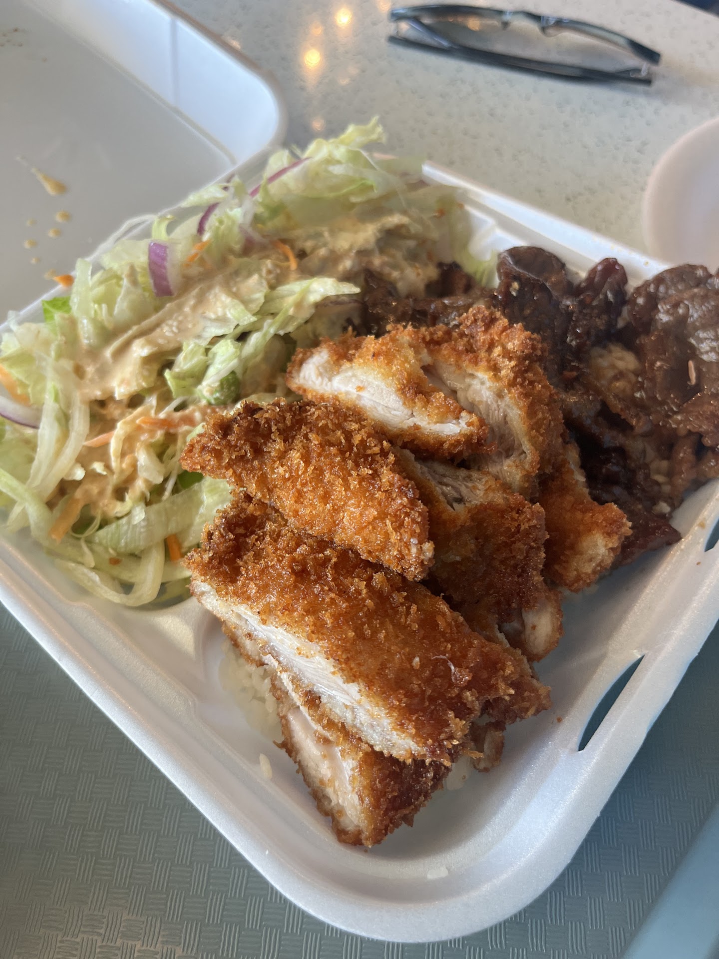Read moreMy husband and I had never had food from this place before. We decided to go all out and try a bunch. We spent $45.09. We got 2 #14 (Hawaiin BBQ Mix) and 1 #2 (Chicken Katsu). The Hawaiian mix was flavorless. The beef was half fat. Not fat with beef but just pieces of fat. Not even a little tender. It was like chewing on rubber bands. Then we get to the Kalbi ribs also where like rubber bands. The chicken was moist but bland. The rice tasted like Uncle Ben's ready rice and the mac salad tasted like sea food. The chicken Katsu was good. It had flavor and a nice crunch. We are so disappointed with the food and I can say we will not be going back. I would say you...