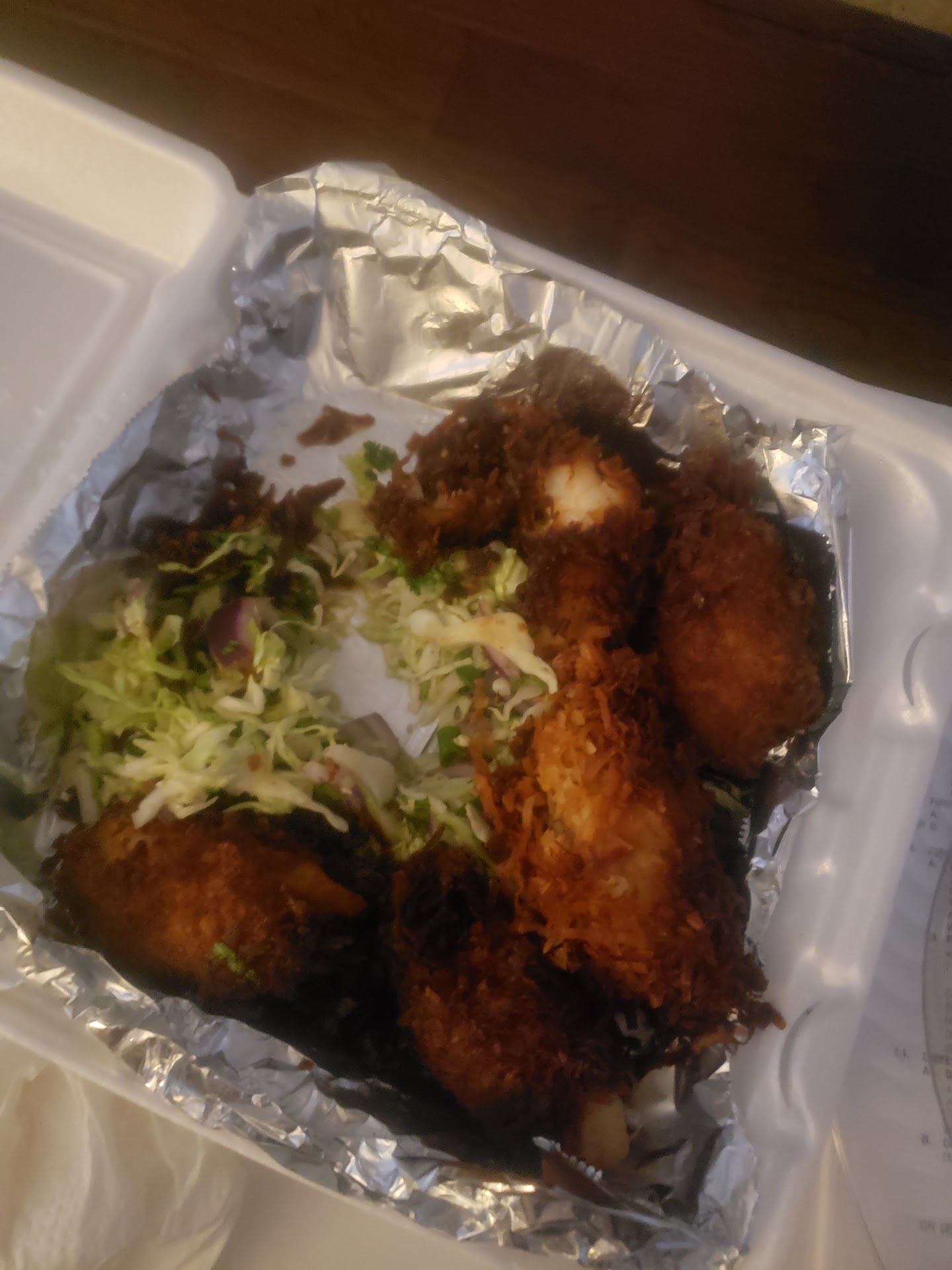 The Thai bbq chicken was the third course.... When the waitress placed the chicken on the table... I took a whiff; the aroma of the chicken fired neurons in my brain…. I had previously smelled this before.... Rotisserie chicken from Costco. Do you know that distinct smell of Costco chicken? Have you ever seen the chicken wing of the Costco rotisserie chicken? Soggy chicken skin… All the signs checked out from this “Thai BBQ Chicken”.