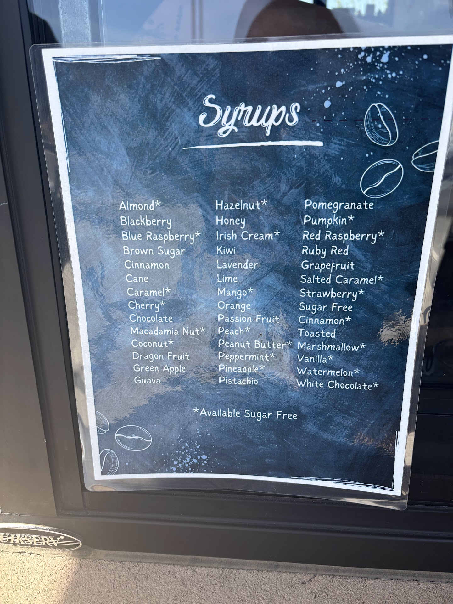 Read moreThis place was great! No idea if they’re a chain or a mom and pop but they run their business like a mom and pop with attention to the details and connection with the customer. They offered recommendations and gave two little covered beans on top of my coffee when I drove around. Kudos to a good business! And the ☕️ was pretty...