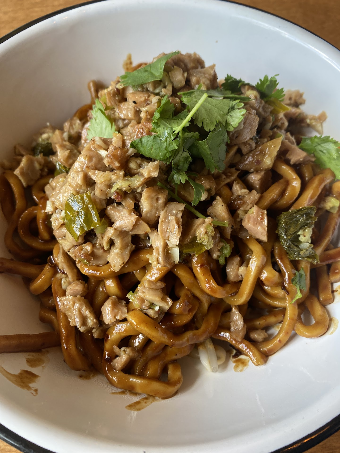 The sesame noodles were delicious—highly recommend adding the chicken if you eat meat. It was like a soft, tender version of bang bang chicken. The Dan Dan noodles were generously topped with seasoned ground meat; the flavor was bold, and I personally thought a few fresh vegetables (like the cucumber in the sesame noodles) could help balance the richness.