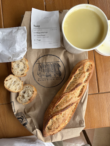 Read moreI know it's counter intuitive for me to tell you to order a salad at a sandwich bar, but the salads at Addys are ginormous, come with a couple slices of Little T's bread on the side, and are filling and delicious! When I ordered a sandwich here, I felt a little ripped off for a tiny, $9 baguette sandwich that still left me feeling hungry. But when I ordered a salad, I was pleasantly surprised! This is a go-to lunch spot for me now when I'm craving a big, tasty salad! They also have a juice bar, and are open for breakfast sandwiches and coffee in the morning. Small little cafe style bar so not a lot of seating, but somehow it's never that busy so I find myself able to get a seat. A couple of nice outdoor tables, too in the summer. Staff is nice...