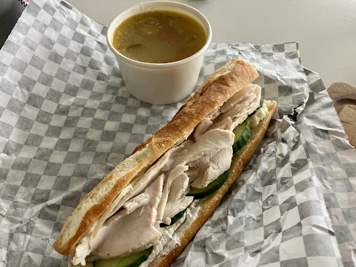 I really want to like this place, as it's near the office, the staff is very friendly, and the ingredients they are of good quality. The issue I have is that the food is too often under seasoned, lacking in good flavor balance, or just plain weird combinations of things that might seen good in concept, but don't work well together in execution. The good: The pate baguette is very good, as are a few of the more common panini combinations. The bad: The deli salads are underwhelming in flavor as are many of the soups. A recent example was the sausage gumbo. I'm thinking gumbo: a dark rich roux thickened with file or okra, and full of celery, onion, peppers, with andouille and chicken, topped over rice. This was definitely a light soup, with very little in the way of vegetables, no roux, no okra, no spice or heat.