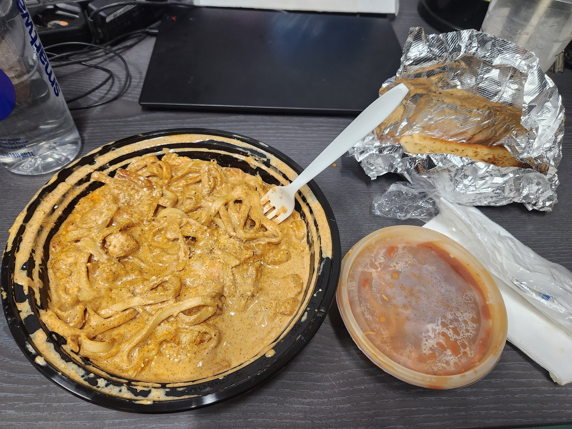 Read moreHonestly, it was 12:30am, I was hungry and tired and didn’t have the energy to cook food, so I checked a few different pizza places before checking Uber eats. It was one of their “order in 5 minutes for free delivery” deals so I thought, why not? My card declined the first time (forgot it expired), and so I tried my other card, and it went through. I say this because I hit a point of exhaustion while ordering where I debated even staying up for delivery, and the declined payment felt like a sign to just go to sleep. Well, it went through finally and the wait time said 35 minutes. Not bad, but I suddenly was hit with another wave of exhaustion. Long story short, the food came in 22 minutes! First thing I noticed was huge portions, bread ;), and a dum dum lollipop in the bottom. My sleep deprived brain was a little too giddy. But the food was absolutely delicious! And I didn’t even realize it was a food cart until reading a few reviews on here after I ate it. Could...