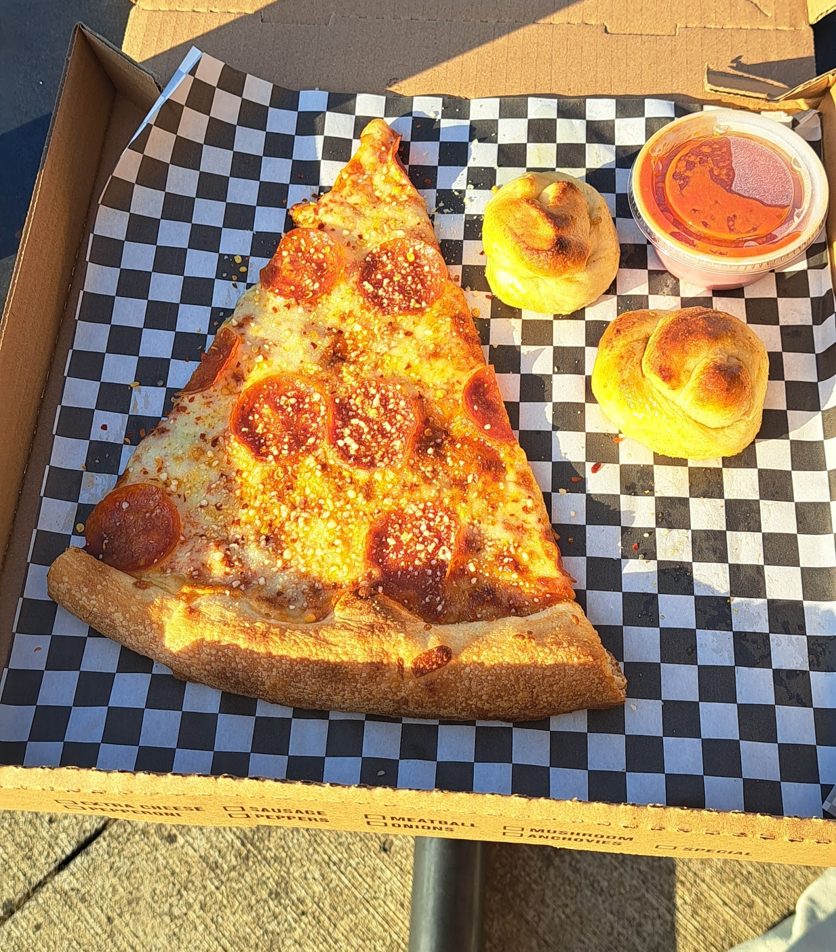 Standard NY style slices with a great selection. The regulars like cheese and pepperoni, but also rotating meat slices, veggie and vegan silces too. Friendly staff and good...
