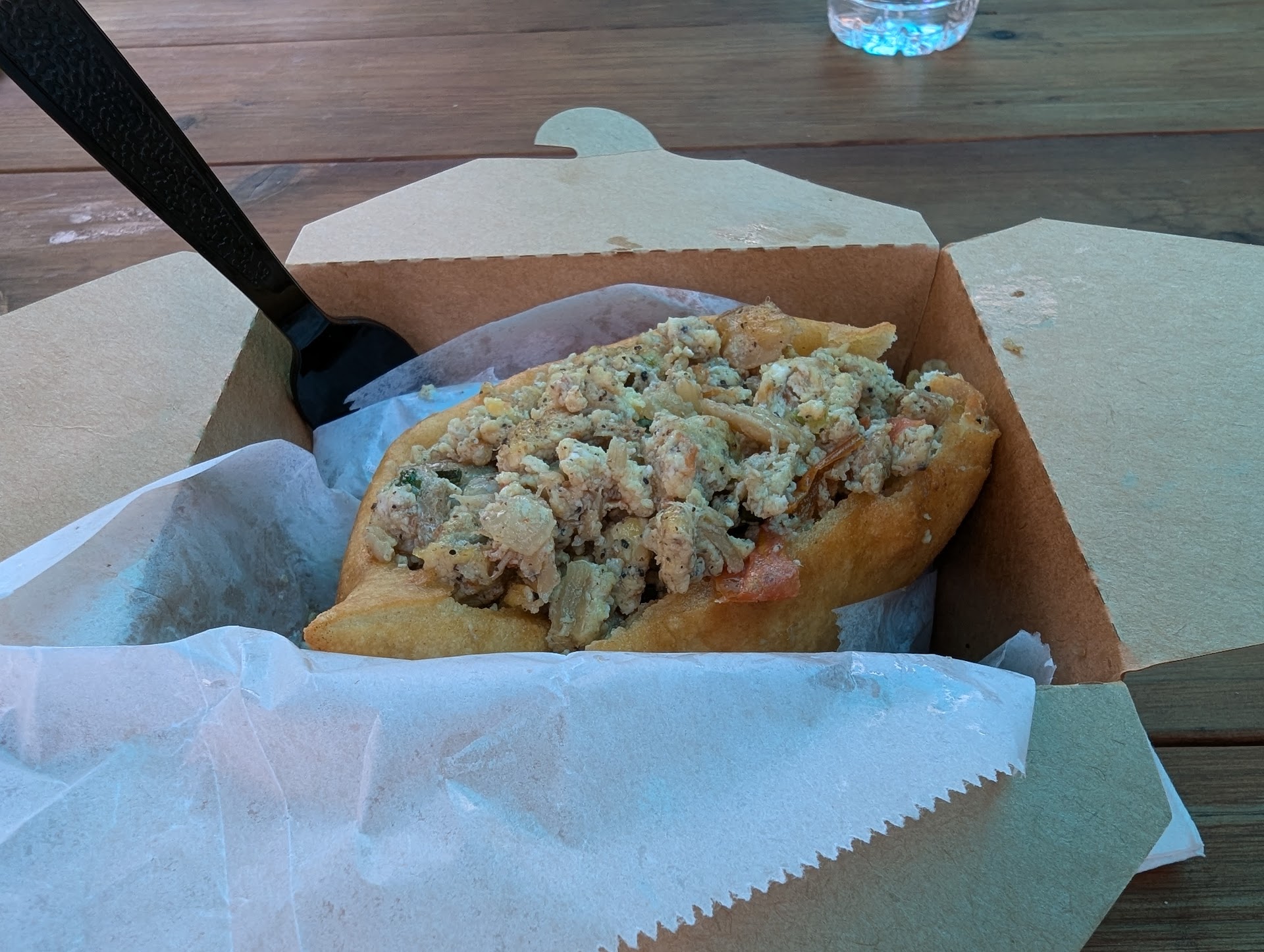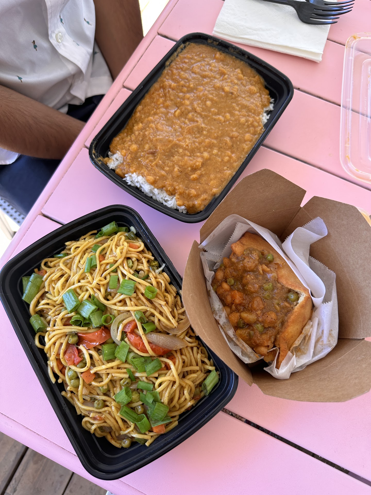 We ended up getting the Guyanese Dahl on Basmati Rice, the Chef Bibi's Guyanese Vegan Chow Mein and the Chana Aloo Curry in a Bake. The Bake was my absolute favorite!! Everything we ordered is vegan and I wish we lived in Portland to go back and try more vegan options!