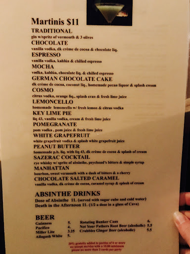 My date and I were not greeted by the bartender nor offered menus, just asked if we’d like a drink. Her attitude was crisp, cold and off putting (btw, never got her name, and the name on the receipt for cashier was “Host with the most”). No hospitality whatsoever. Was it because I was on a same sex date? Better not be. We were mostly there for dessert, and the idea of a drink was the cherry on top if you will. Ordered a seltzer water, martini and 2 desserts. Seltzer was presented rapidly. I watched the bartender make a martini that looked like my order, leave it on the bar rail exactly where she made it, walk away and start working on something else. I asked another staff member if that was my drink, she asked the bartender and confirmed it was in fact mine. How’re you going to make me a $13 drink and leave it on the rail, near me but not in front of me, without giving it to me??