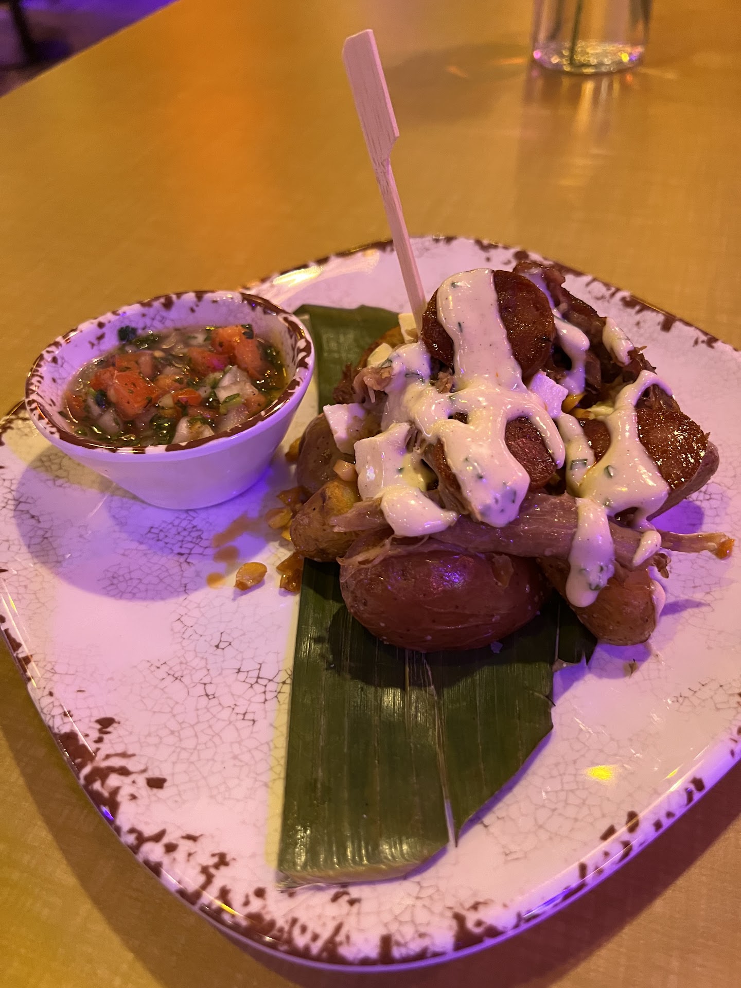 Maine Potato, Cheese, and Aji Empanada: This empanada, filled with Maine potatoes, cheese, and aji, unfortunately lacks flavor and the desired crispiness, resulting in a 1/10 rating.