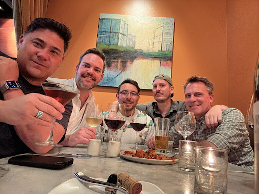 Exquisite, upscale, Italian bar and lounge. Our server, Eric/D'Eric/James/Jameson, was patient, informative, and playful with our varied group of five. The Malbec wine was just what I wanted (a little bite, but full and smooth). The Zin had a deep, full body flavor. The oil and salt with the bread was simple in presentation, but a fantastic play of flavors on the tongue. The calamari was so much easier to eat not being fried, and the garlic aioli sauce that went with it was more than pleasing. Kudos to the bartender who made my Irish Coffee: it was the best made one I've had. Lastly, it was a wonderful experience that we were able to take our drinks with us, from Bar Mingo, to...
