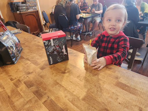 Read moreI stopped in for the first time with a friend to pick up RCCC tickets and grab a coffee. The barista was so nice and made the most delicious coffee with cinnamon that I've ever had in my life, as well as an amazing mint matcha! They also have a nice selection of tabletop games to purchase and a library if you want to try out games while you're there. The genderless bathrooms were really nice as well and have fun symbols on them. There are several tables throughout to chill and play games at. There are also some really cool laser cut wooden and acrylic card cases and crafted dice boxes, as well as miniatures and handmade dice. Will definitely be back again! The service...