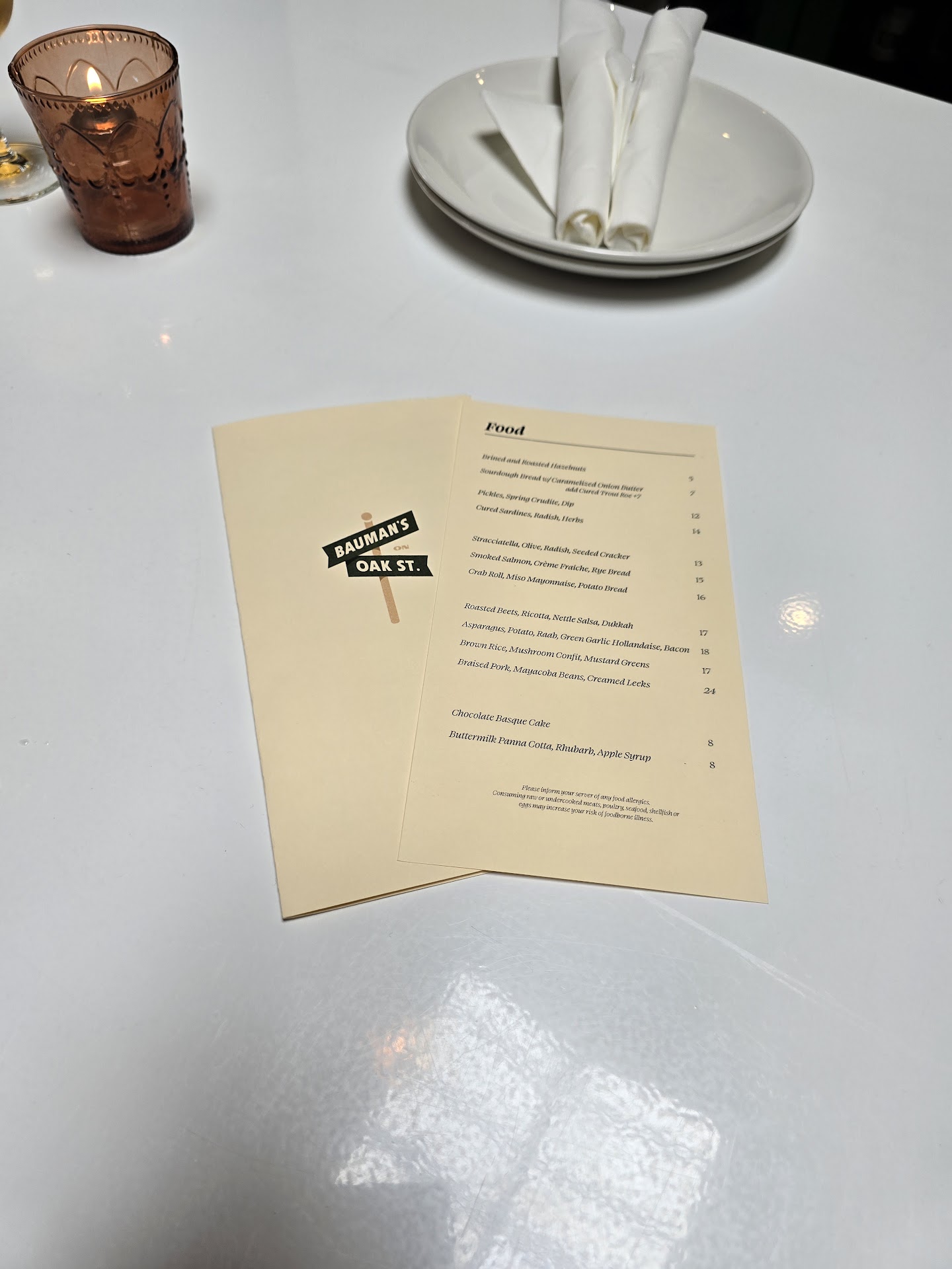 Starters: We loved the bread and butter. The bread was crispy. The butter was rich and sharp, with a flavor that lingered in the best way. The plum butter offered a deep, caramelized note. The richness of the butter tamed the sesame’s nuttiness (the sesame was on the bread).