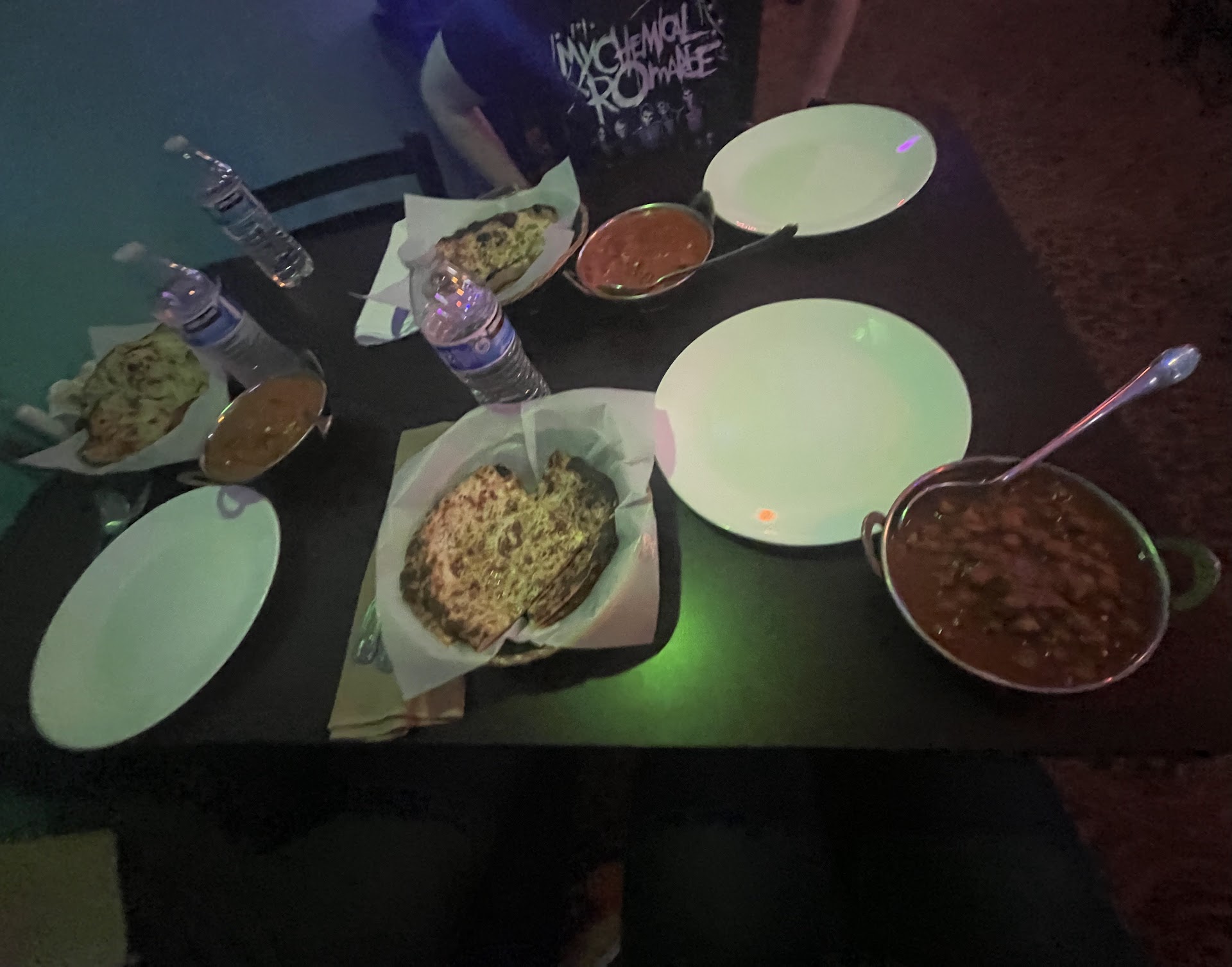 We dined in and ordered our standard first time fare to compare. Butter chicken, garlic naan, paneer pakora, navartan korma (sp?), and Indian tea.
