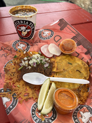 Read moreJust finished eating there so I'm going to post while everything is still fresh on my mouth. Watched a hundred videos of people raving about the tacos online so when I saw the trucks out driving I knew what I was ordering for the families Friday night takeout. Ordered 4 keto tacos, 4 queso tacos, 4 spider tacos, 2 vampire tacos, a machete, 2 consume and 3 drinks. Set a pickup time for my order because the weather was bad and we didn't want to wait out in the torrential downpour. Still waited 15 minutes past my scheduled time before we got most of our order. "No machete or coco drinks" they offered to replace the items with something else but I opted to just have them refund the items since we had our hearts set and our palettes waiting and wanting. Got the food home and realized that it's 70% hype and all a single flavor profile...... everything tasted the same, no variation in flavor to speak of. I was concerned when I picked up our $102.00 food order and it didn't even weigh 2 lbs with packing and fit into a standard bag..... Long and the short of it? Sadly over priced, over hyped, and they could shorten the menu by half and nobody would even know. At birrieria pdx a taco is a taco is a taco but hey the horchada with the works made it home just fine and tasted great. As a retired chef and food cart aficionado I absolutely won't be going back to the one trick pony of Birrieria PDX. I can go to any of my normal Mexican places and spend half as much for twice as much food and get...