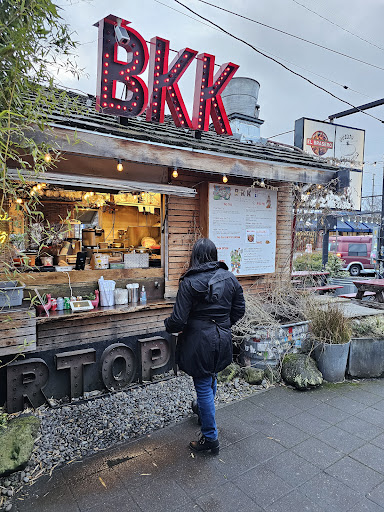 I was visiting Portland and apparently made it my goal to visit as many food pods as I could. My destination that day: BKK Thai. I donāt even like Pad Thai. Itās usually too oily and sweet for me but I decided to try it anyway. I was blown away š³ The flavors were perfectly balanced, enough veggies to break up the noodles, and most importantly not too sweet. The Thai tea was the perfect accompaniment to wash it all down. I will say the Satay chicken was on the drier side and I couldāve done without but it didnāt take away from the amazingness of everything else.