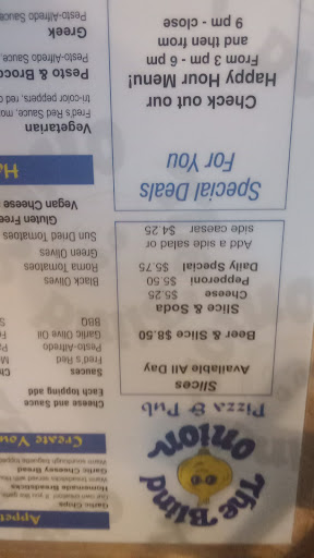 Read moreSimple, charming, and unassuming, Blind Onion Pizza was a lovely spot to grab a small veggie pizza (among their many options) that I would recommend to any visitor to Portland in the vicinity.