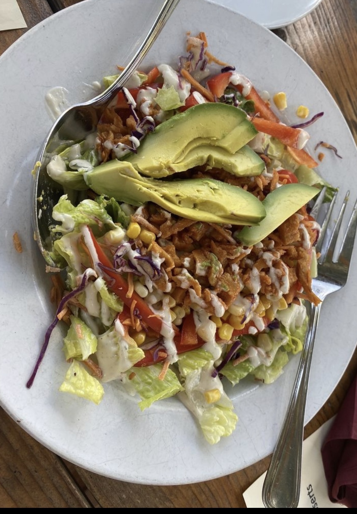 In a word --- WOW! I love this restaurant. The best all vegan I've experienced so far. They have plentiful dishes to try. And, although I've just been here twice (so far), I've got 5 dishes plus 2 desserts under my belt so that I can safely say that this place rocks! Okay, so on my first visit a few weeks ago, I tried the Vegan Salad Sandwich (made of chickpeas and other vegan goodies with a delicious sauce) and soup (it was chili that day) and the relative had the BBQ bowl. We sampled each other's plates. The sandwich was super delicious and was served on French baguette, just the right amount of flavor and it was so satisfying. Her BBQ plate was yummy, the soy curl BBQ 'meat' was tender and tasty, same for the black beans and slaw. I am not a fan of their Mac n cheese but my relative liked it. The Mac n cheese was just a smidge bland for my taste (for exp. I like to make mine with a sharp cheddar and jalapeño jack, I like it flavorful) so I wouldn't order the Mac n cheese on my future visits but the noodles were nice! My next trip I had the Yakisoba noodles which have become a favorite they are so delicious and tasty. I do wish they'd add more veggies but that's ok, bc the portion was enough so that I had to take a to-go bag. We also split a Buffalo Ranch Salad which I highly recommend. The flavors coming off of those fresh delicious veggies was so satisfying and their dressing was to so yummy! We also ordered a Thai wrap which was good. Lots of fresh tasty crunchy veggies including a little mint which was a nice tough. For dessert, I had an apple crisp with coconut whip which was so darn good that I came back the next day to have another one of those! I'll be trying their brunch out in the next couple of weeks and am really looking forward to sharing that experience with a visitor from out of town. They are in for a treat!! Really good service here too. Parking is a little tricky it's all on the street but it is free, so there's that. 5 stars all the way!