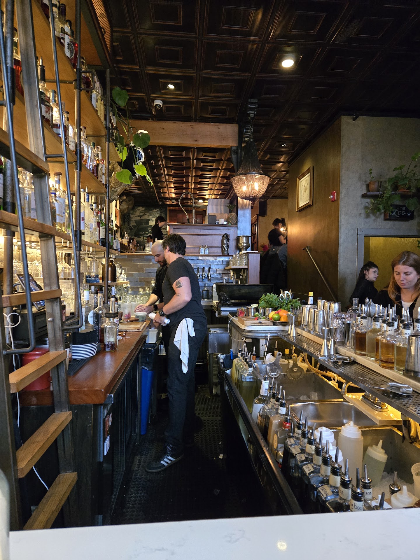 Read moreThis isn't the speakeasy. It also isn't the typical loud sports bar or a gastropub that have a thousand flat screens plastered all over the walls. A small place rectangular in shape with the bottom and top tier and two bars, this is the kind of place you go to have a conversation with friends. And if you're alone like me when you sit down at the bar, you're going to be greeted as if you were an old friend. The Danish have a word to describe the bartender at the top tier bar. When it comes to mixing drinks he embodies and demonstrates the highest knowledge, prerequisites and competencies a person who's an expert in a particular subject, field, craft or occupation. The Danish description for people who possess this level of skill is called Faglighed ( say, Faw-le-hed). Watch Everybody who's working there. And you'll easily be able to label them all the same as this bartender. The place has a nautical theme and the drink menu follows suit. I had a Mutiny on the Bounty. It's a bourbon drink with a softer finish than most. Living in Kentucky for the last few years taught me a lot about bourbon. The bar at the 1st floor has a simply wonderful selection of bourbons that cross the entire spectrum of tastes and price points. I also had a meatball appetizer. 💯 tasty. The couple to my right were celebrating their thirteenth anniversary. They shared that their drinks were perfect and if I was a bully I'd have helped them with the oysters they had. As I said, it's a small place. The natrow signature from the street makes it easy to miss. Trust me. If you come in here, have a drink, and eat some appetizers, it'll be even easier to miss...