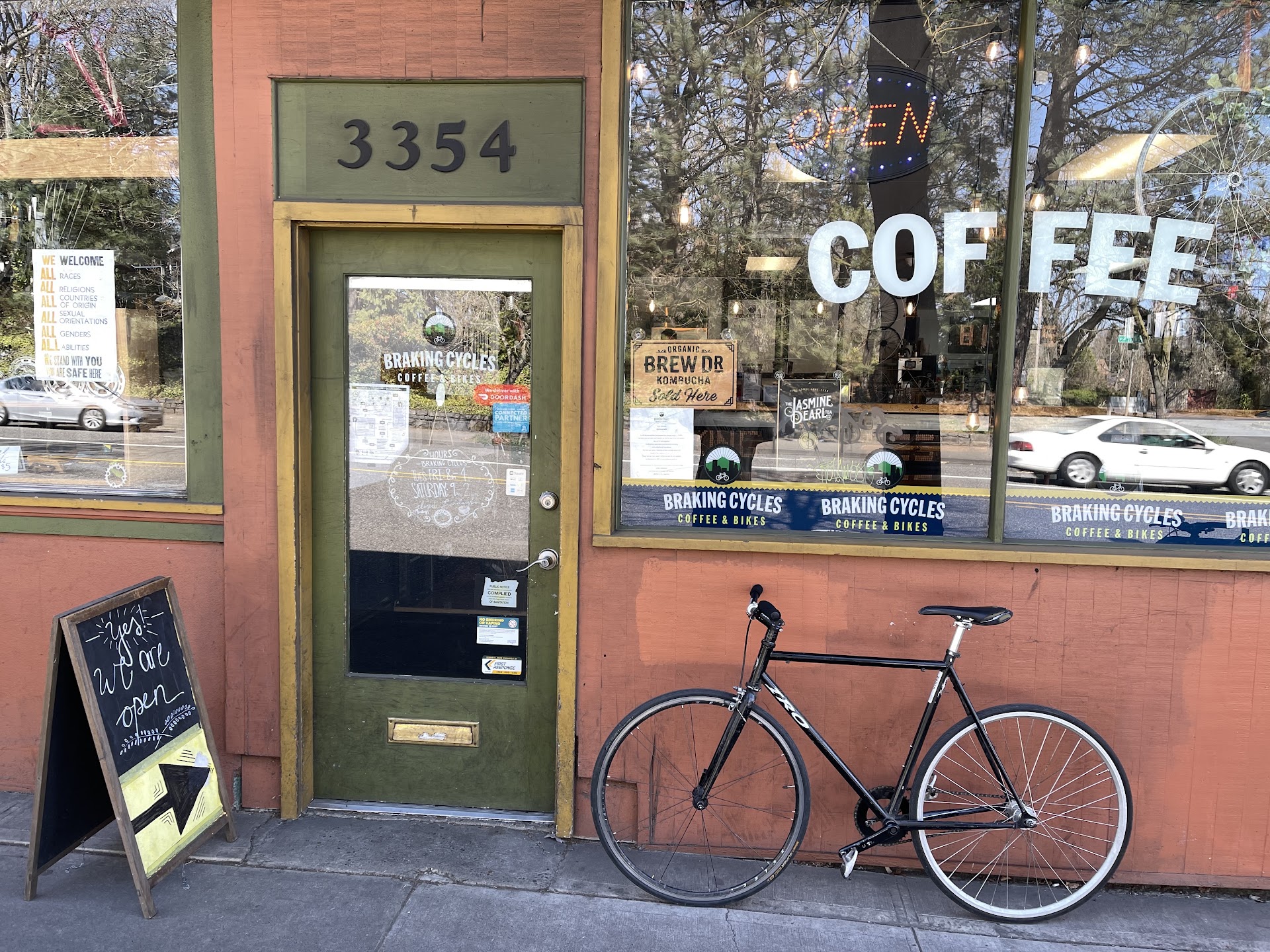 Had a coffee and conversation here a few days ago with friends. First the coffee was great, but more than that this place is really interesting. The floor is covered in pennies of various shades that make patterns. We were told that you could see them better through the lens of your phone camera and that appears to be true. In the back there is a bike shop. The not-so-secret to Braking Cycles is that it helps fund a nonprofit that helps youth get off the street and into housing. What an excellent way to spend a few...