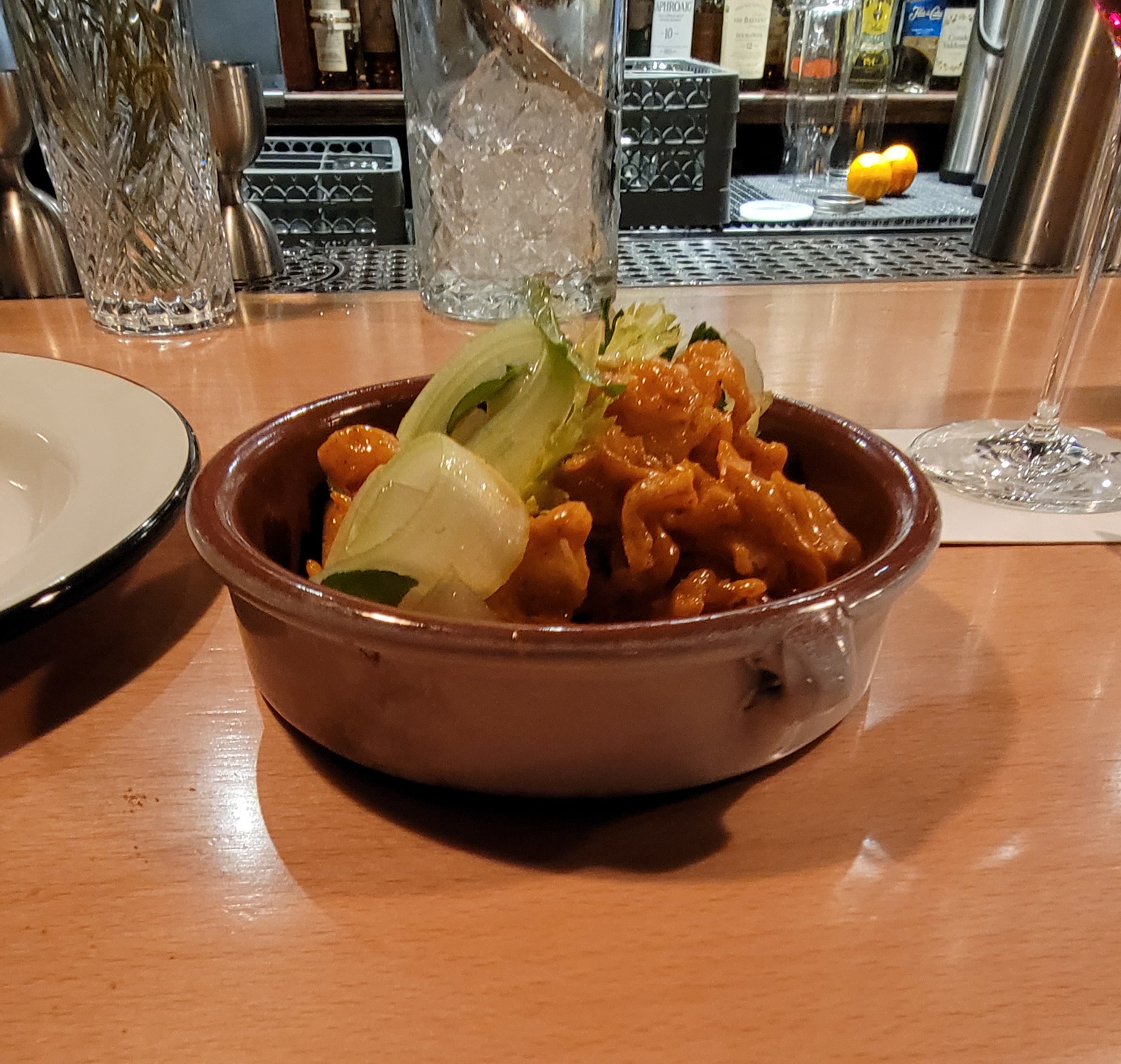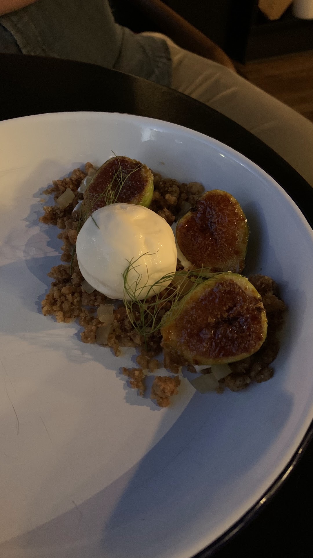 Two unlikely stars followed and were our most memorable tapas combination. The chef elevated tripe to a true addictive flavor and texture with the small pieces of scattered fresh mint and parsley not just for looks. We combined it with the coal roasted cabbage, garum butter. The sweet, lightly smoked cabbage was the perfect match with the harissa on the tripe. A chef that can elevate tripe was sure to handle sweetbreads with care and this was true combined with the acid of pickled mushrooms. The poached peach and rose granita and the fresh fig endings were stellar flavor, texture and taste finishes. We will definitely return with the expectation that the seasons will influence the menu. Thank you for a...