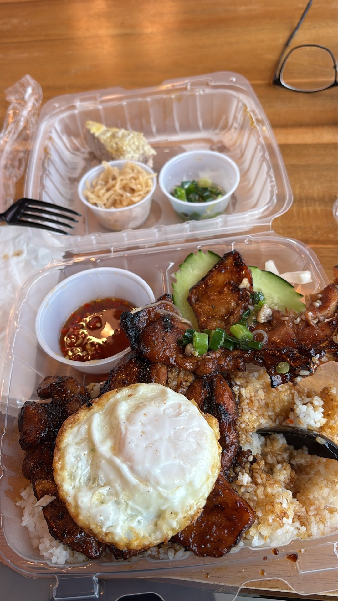Read moreI was so hungry and starving to death one day… I went around and around looking for something good to eat… then I saw Broken Rice food cart. From afar I saw a beautiful girl at the window and the wind was blowing her hair in slow motion as she reach out to hand a customer their food. She smiled and said “thank you, come again” and that smile stopped time. Everything was frozen. I was no longer starving, I didn’t hear any traffic sound on the busy streets of 82nd. All I heard was my heart beating, and no one was moving, everything stood still, besides her hair in slow motion. I walked towards the cart slowly… drooling a long the way. I asked for the Special. And she said “I am not on the menu.” We smiled, and giggle, and then she recommended the Daily Special ice tea… she knew I was thirsty. I got that and the Broken Rice with an egg. Sat down right in front of the cart and ate ever last drop of rice. Both was sooooo good, best I’ve ever had. And the view there was amazing! Highly recommend. Definitely a hidden gem I found...