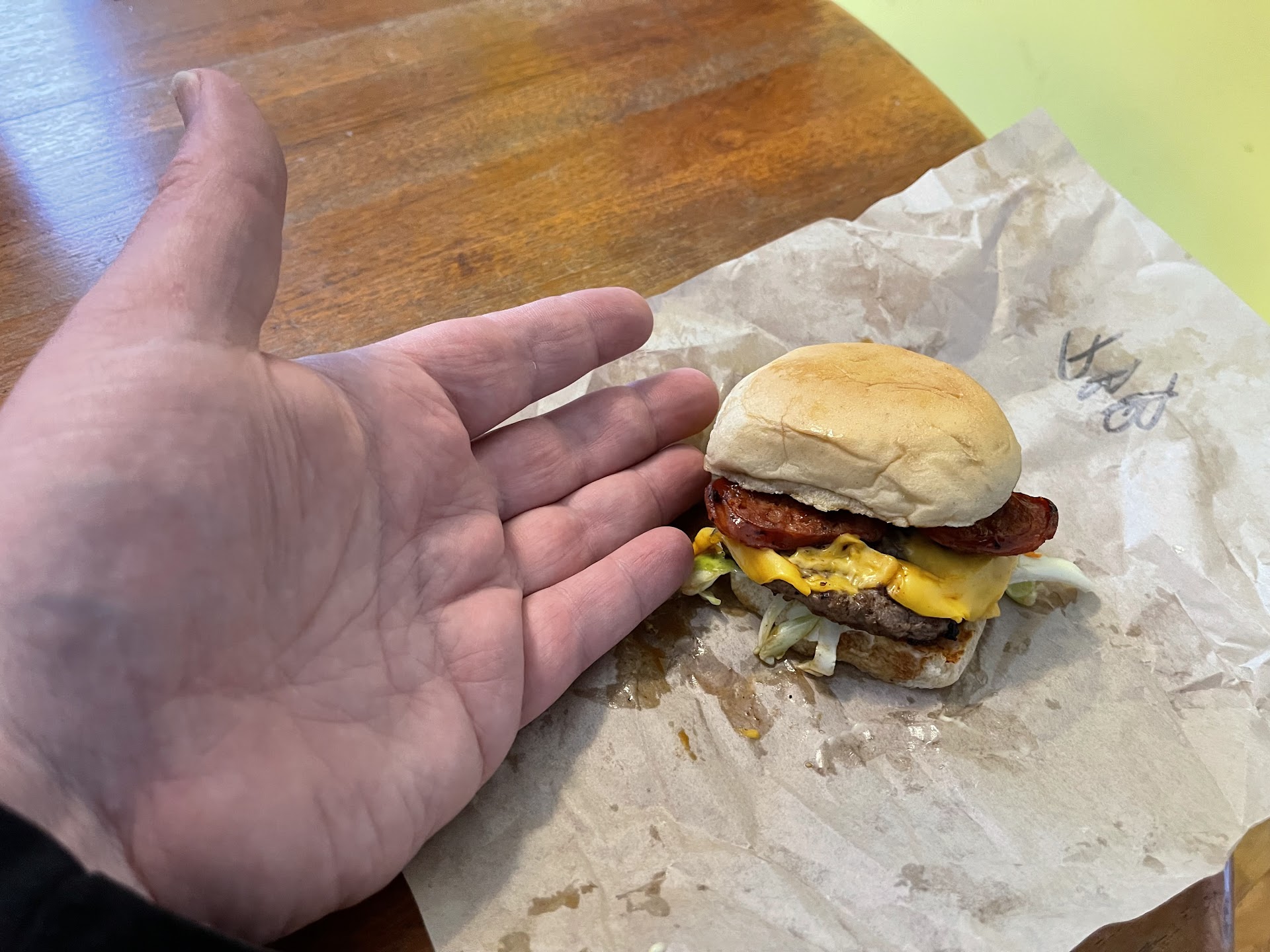 After a second bite I decided that this sandwich didn't appropriately represent the $16 I'd paid and decided to take it to the counter to get answers. Perhaps the order was taken wrong. Perhaps I HAD mistakenly received a kids burger patty.