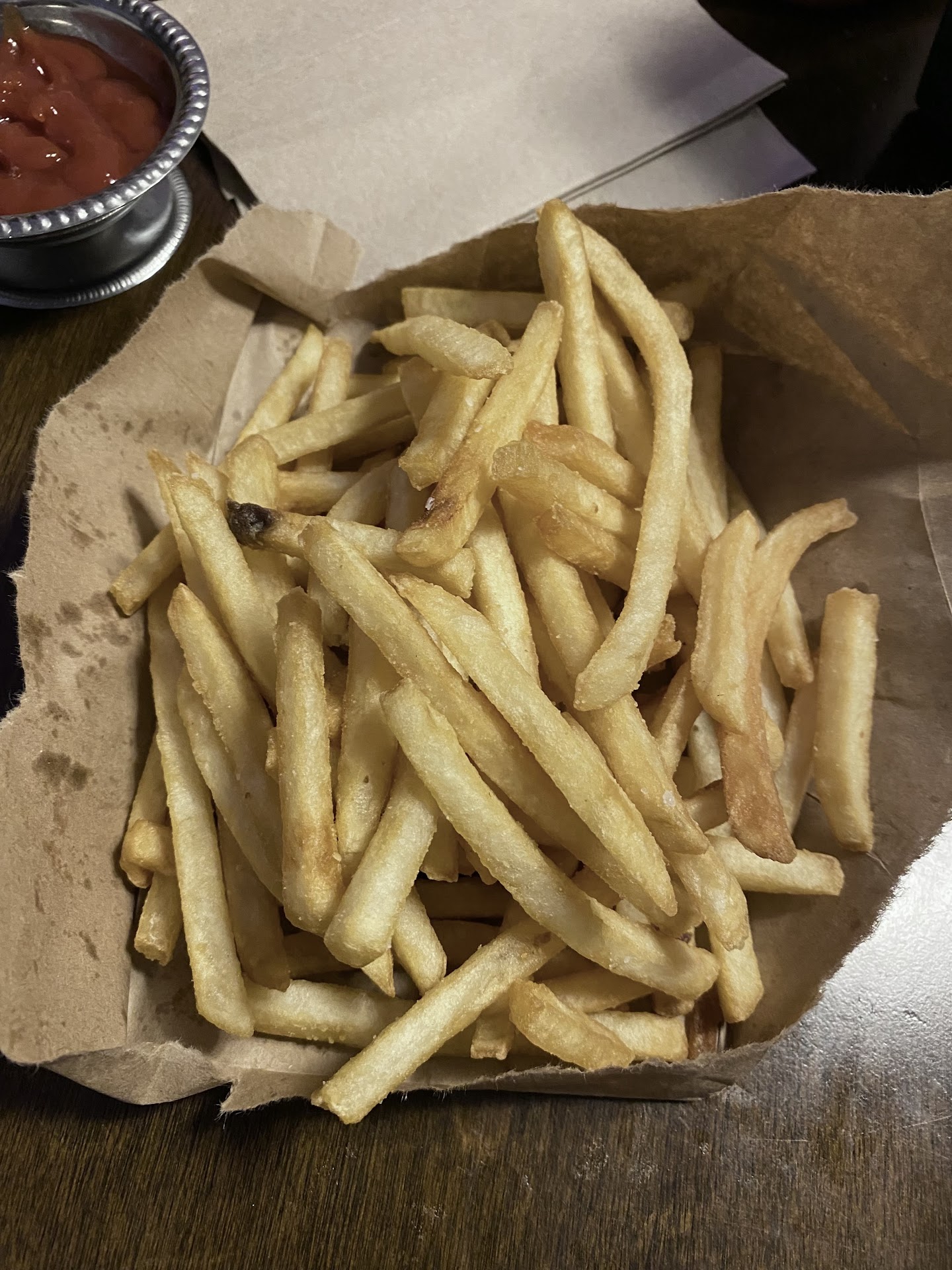 He ordered the No. 6 basket and I selected their bacon cheese burger basket. After paying $33.29 we self served our beverages, found a booth and eagerly waited for our food to arrive. Within 5 minutes, the friendly young man arrived with piping hot french fries and our lunch was off to a great start...until I picked up my burger.