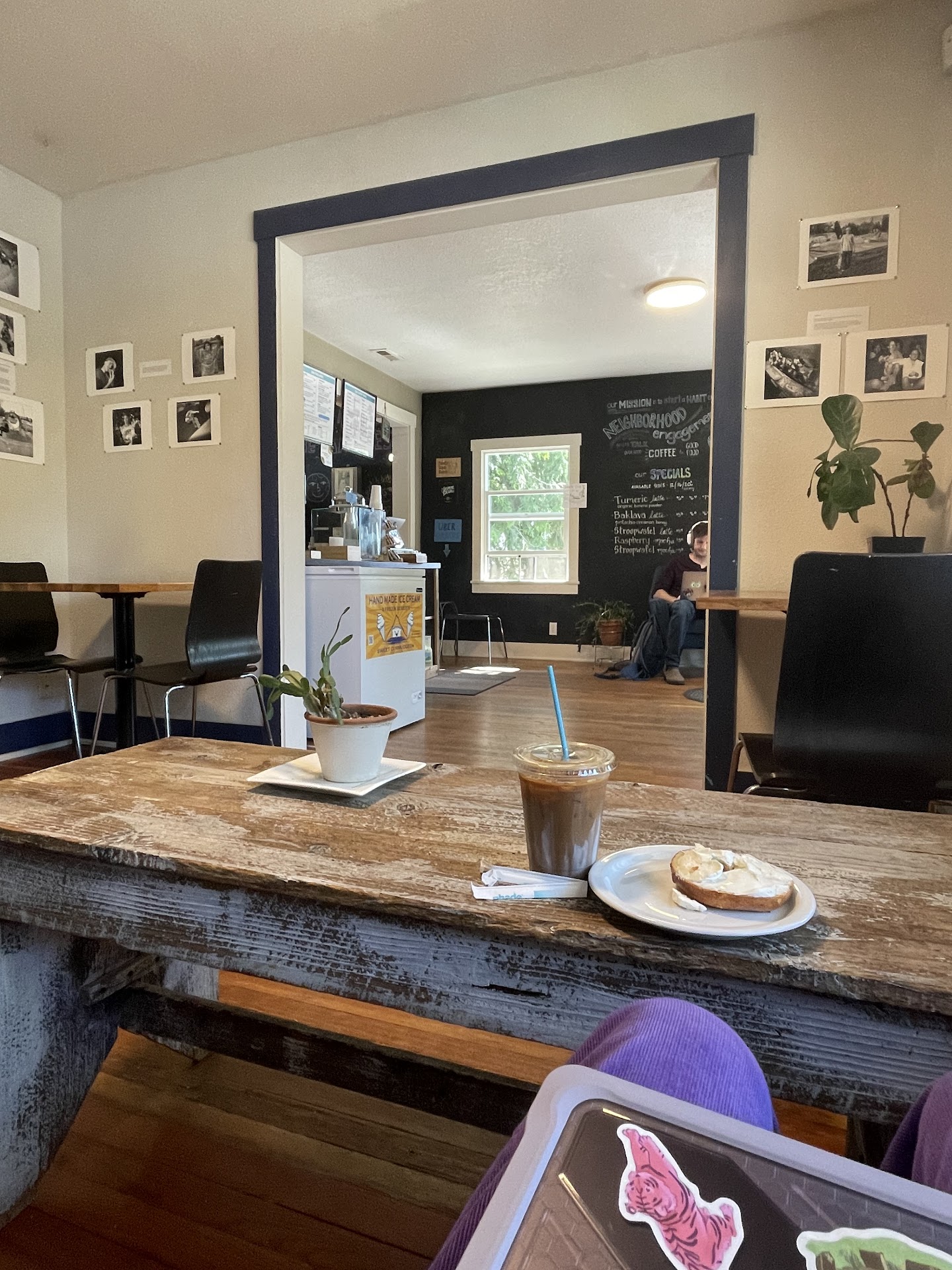 Read moreMy husband has a quick job around the corner and I stop in here while they work when we're out together in one car. The staff are so kind and considerate. The coffee is great. I haven't had food here yet, but there's a handful of people here as I type this and they're eating and drinking coffee and look very happy. There is an older couple at a table negotiating who is going to drive, a woman and her three or four year old silent in the corner by the bookshelf, two young women sitting close and smiling while they chat at the couch, two goth kids, three of the sort of entitled young people I expect to run into everywhere and politely nod at while reminding myself they're doing their best, and my disheveled and paint stained self. Diverse (for Portland), comfy, good seating... zero complaints. Perfect...