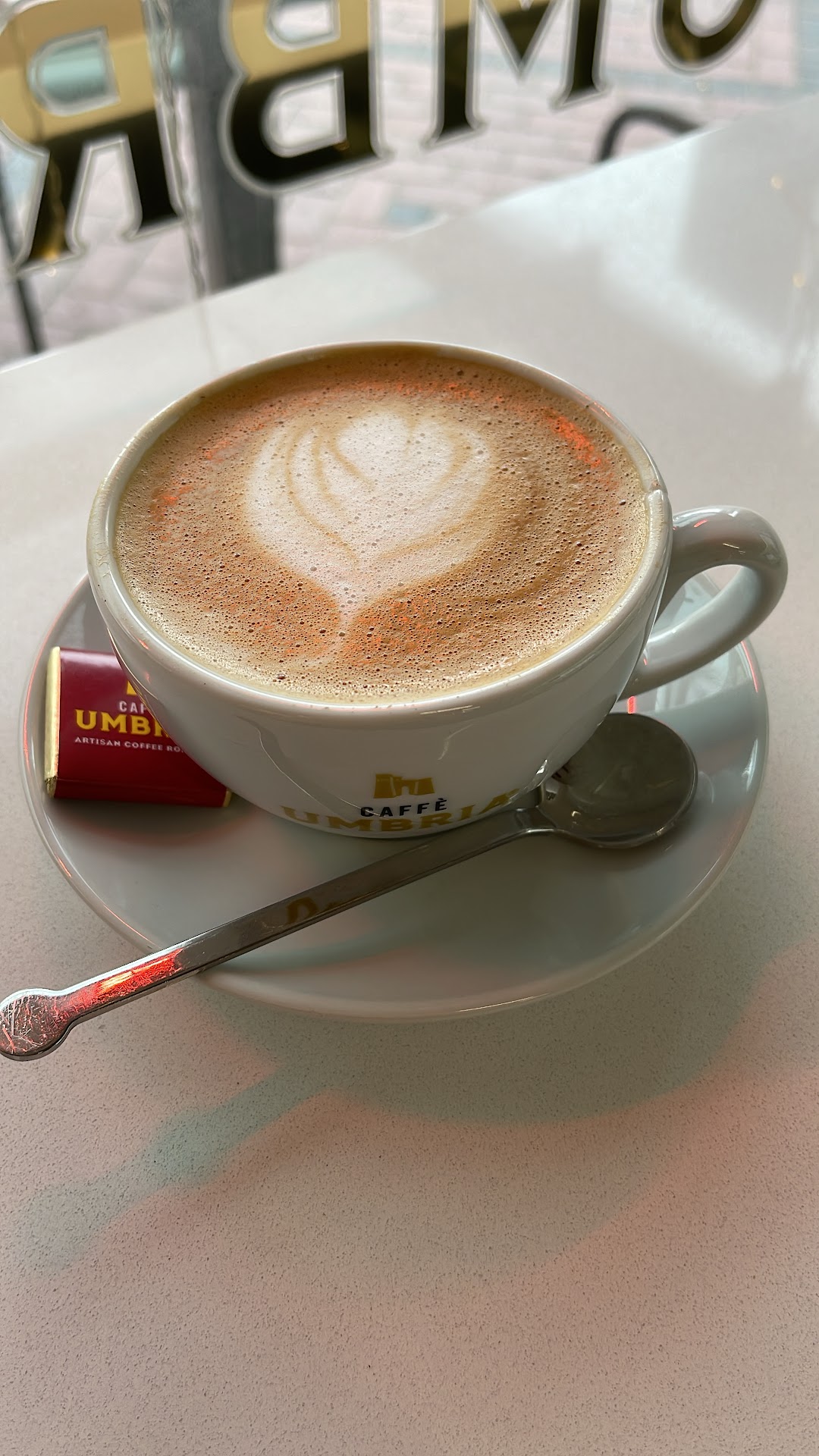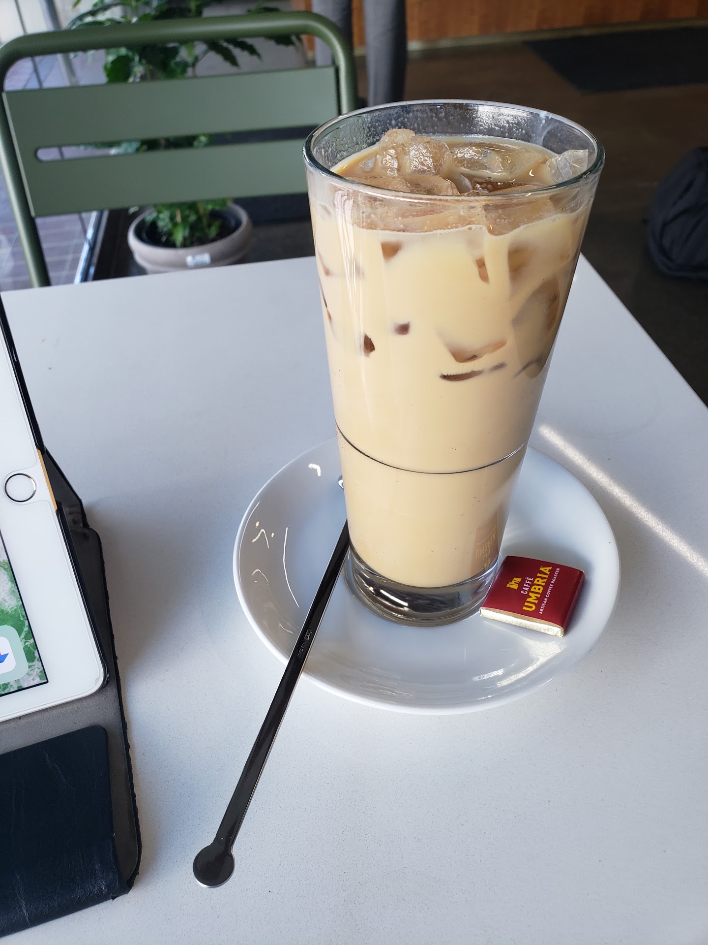 I've been to a few of the Caffè Umbria locations around town. I came to this one to study and had to leave within the hour. I'm not sure if it's because it's basically made of glass so it seemed louder, but the baristas were soooo loud. My headphones were turned up all the way and I could still hear them. One of their friends (I'm assuming) was sitting at a table and they were all chatting really loud. I usually like seeing coworkers enjoying themselves and having a good time. And to be fair, they were very nice (which isn't true of a lot of baristas in town lol) even if they got a few things wrong with my order (to go cup when I said dine in, forgot about my food until I asked about it, wrong ice level). I probably won't come back to study or work because of that, plus the coffee and food was just kinda mid, not that great. Price was about average for Portland.