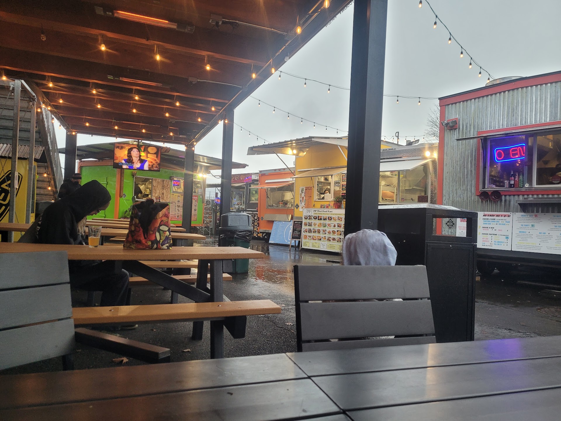 The food at the food trucks is great. But it seems like there's always new food trucks coming in and old food trucks moving out. There have been some great trucks that My co-workers and I loved, then we went in, and they just weren't there anymore. Boss Po Boys, The sushi cart, The Mac shack, The list goes on. Great vendors that serve great food. There one day, gone the next. Apparently, it's because They can't make enough money to survive there. There's absolutely no place to park, and when you finally do find a spot, you are usually within 2 ft of an unhoused encampment. I realize that's not cartsides fault, but their pricing is way too expensive for the neighborhood in which Are located. Happy hour prices for a beer and a shot are $18. For a beer and a shot, in an area of town that no one wants to be in. Know Your role cart side For a couple to go there for a date night, It cost well over $100, and you're not in an environment that justifies it. Look around, and see where you're located. You're not in lake Oswego You're not in West Linn Your pricing is not in line with your location. You are a neighborhood corner bar at best, and you should serve a shot and a beer for 10 bucks or less. They should have specials with the food trucks, where people can come in at happy hour, get something from the food trucks, a shot and a beer, for 20 bucks That's the area you are located in If you want to charge the prices you're charging, go somewhere else. Respect the neighborhood you're in You're trying to be the ram, on...