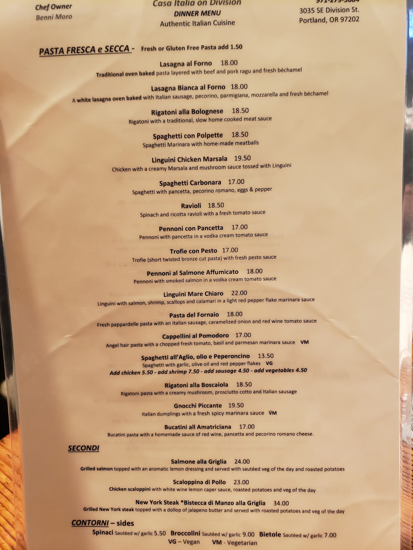 Nestled on a small but busy street corner beyond downtown Portland, Casa Italia is a charming "hole in the wall" serving authentic Italian dinners. The walk to the restaurant had a cozy feel. The sidewalks and surrounding shops were on the edge of being overgrown with various urban plants. There was definitely limited parking so I would reccomend parking a distance away and enjoying the electric scenery on the walk to the restaurant.