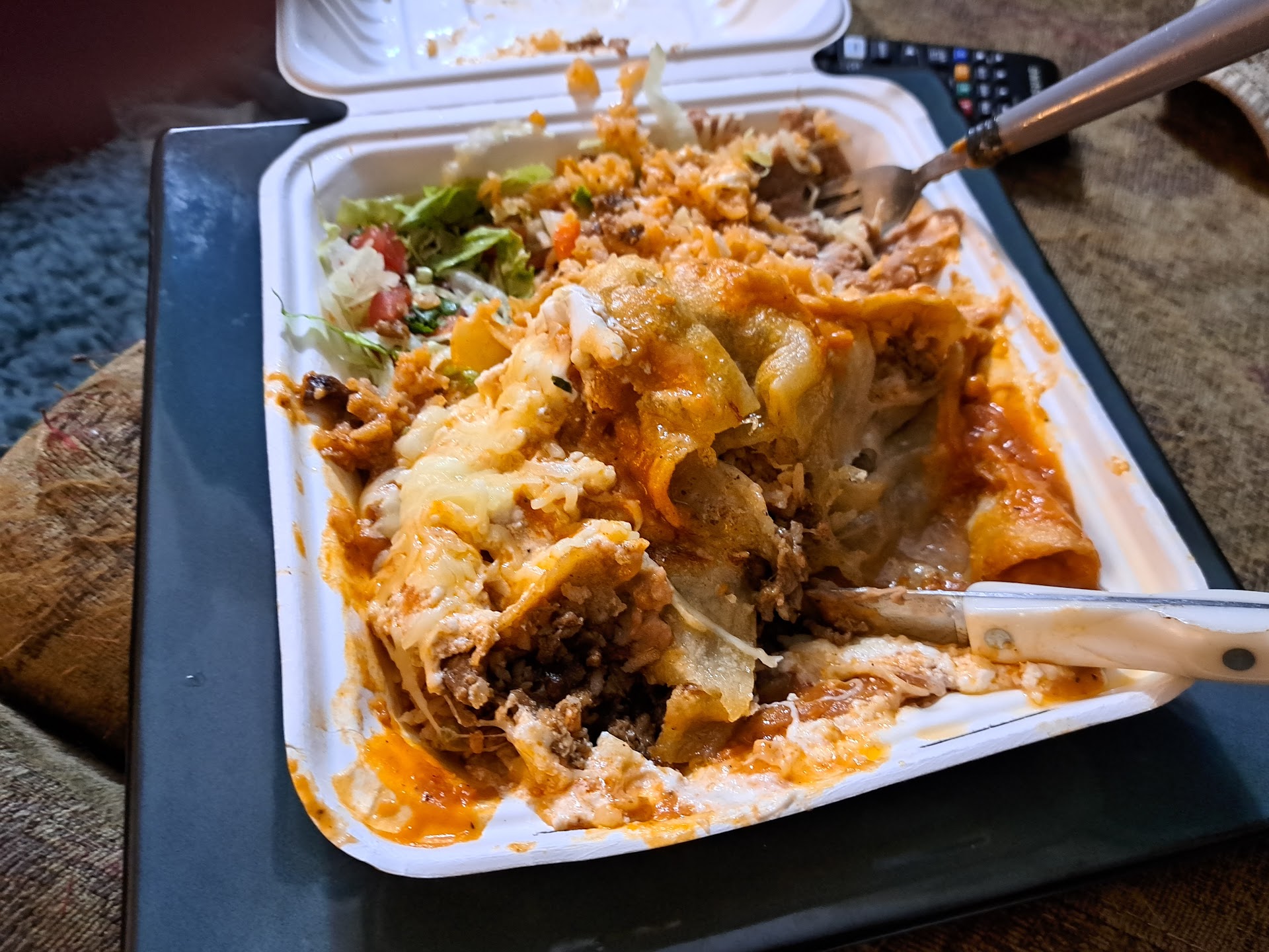 The chimichanga was a mess, uneatable. Instead of what a chimichanga should be by definition it was an oily not crispy not even close too fried burrito that was sitting in a pool of oil making the burrito just an over oily mess. We didn't eat it and threw it in the trash if the owners see this we'd love a refund! I avoided coming back to return it myself, because I didn't wanna get into a confrontation with anyone just working. Yes! I am upset, because that food wasn't for me! So while I got to enjoy my fine Chorizo burrito my partner had nothing to eat. For the price I feel I was ripped off. It also advertises on their website that the meal comes with rice....no rice, just beans and some lettuce.