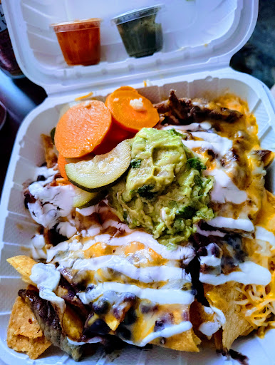 Read morestopped in for the first time today. i've been wanting to try this place, and i was in the area so... if you drive, be aware that the parking situation is not great. thankfully i was able to get a spot at the end of the building in the little lot. the inside is nice and fresh, but not overdone. nice little patio area too, although i just got my food to go. the guys at the counter were friendly and helpful. i got the nachos with black beans and carne asada. now having been born and raised in san diego, i know my taco shops and taquerias. the food here is excellent. a little different than your typical fare, and i am very ok with that. the carne asada has a GREAT flavor...maybe a lil pepper and garlic to it? the addition of the hot carrots, zucchini, and potato(?) slices on top was a pleasant surprise. really gave it that something extra. both the green and red/orange sauces were fantastic. hot enough to be interesting, but without overpowering the other flavors. both had a unique flavor, never had any quite like those. much, much better than the typical "red and green watery sauce" you get at a lot of places. i was very impressed with the food and will definitely be going back to try...