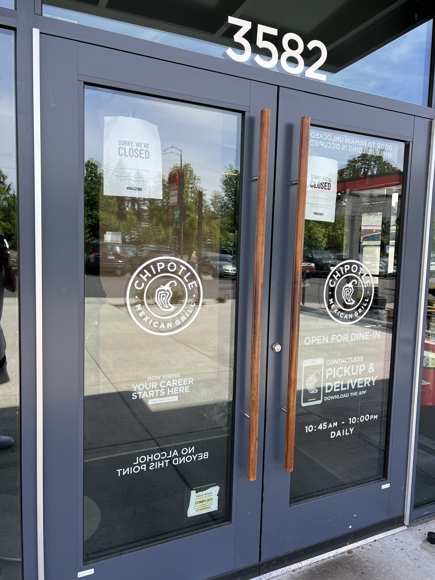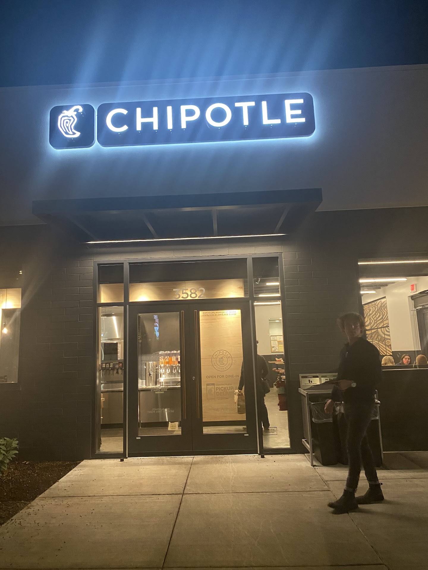Read moreUnprofessional as can be. Multiple times I've shown up to pick up "To Go" orders between 9:45-9:59 when they are open until 10pm which is clearly stated in writing on the door along with a notice saying to-go orders are allowed to be picked up. I show up to find the door locked, employees completely in ignoring us knocking those of us who are working picking up those orders and delivering them to people who would like to have their Chipotle. Taking money out of our pockets by denying us to get the orders. During their business hours mind you I'm not asking for them to be open after they're closed but they seem to enjoy closing early and leaving people's food to get cold on the shelf and then throwing it away wasting it. This is happened at least four time that I've gone there to pick up orders for my work delivering food. You would think that an extra 15 minutes would it be too much to ask maybe they should put that they're closing time is 9:45 since they don't seem to want to leave the doors unlocked until then like it says on the side. So if you like to order food to any of the popular apps ubereats GrubHub doordash or the like be prepared to not get your food if you order it anywhere after 9:30 from...