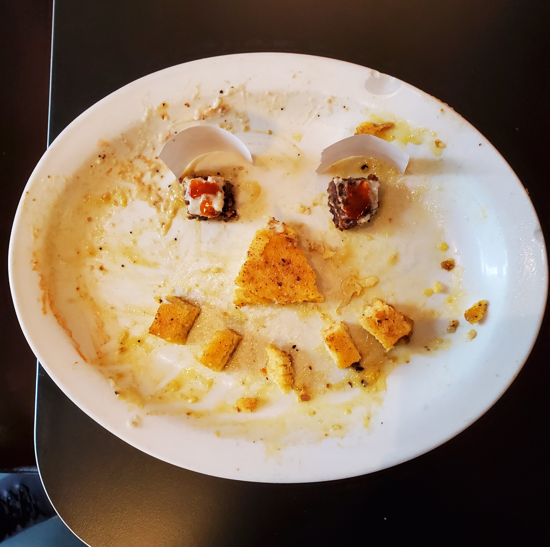 At no point during that exchange does she ever apologize for the mistake or the wait or really acknowledge how much of a screw up it was or offer to do anything substantive to make it right. It also felt like she was basically forced to come tell us and put it off as long as possible. So we just sit there and watch the couple outside eat part of our order.
