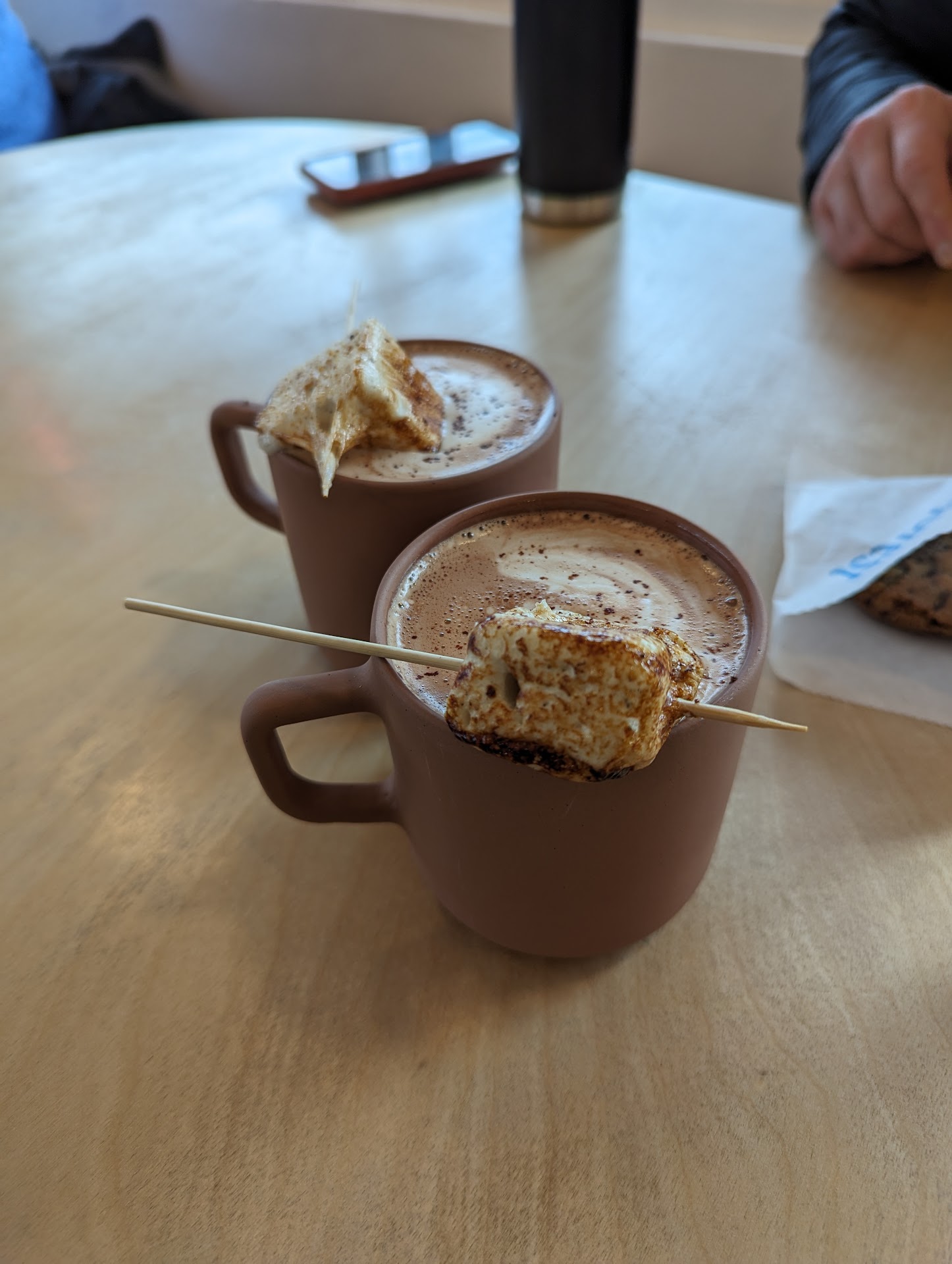 This cafe is a delightful, hidden gem. They've embraced a minimalist aesthetic, which allows their attentive and friendly staff to shine. The star of the show is undeniably their hot chocolate - flavorful and not too sweet. Because the sweetness level is balanced so well, a toasted marshmallow is the perfect addition. I think the marshmallow size has shrunken over time, but the quality is still excellent. I promise you will be thrilled if you add one to your beverage order. You will be doubly thrilled if you get a chocolate chip cookie for later.