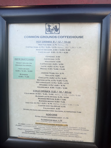 Ā Ā Ā Read moreNice place to chill and study or read a book or meet a friend. Common Grounds houses a fair amount of seating for how small it is, and they keep music levels at a reasonable volume to allow for social endeavors beyond being blasted by coffeehouse rock.