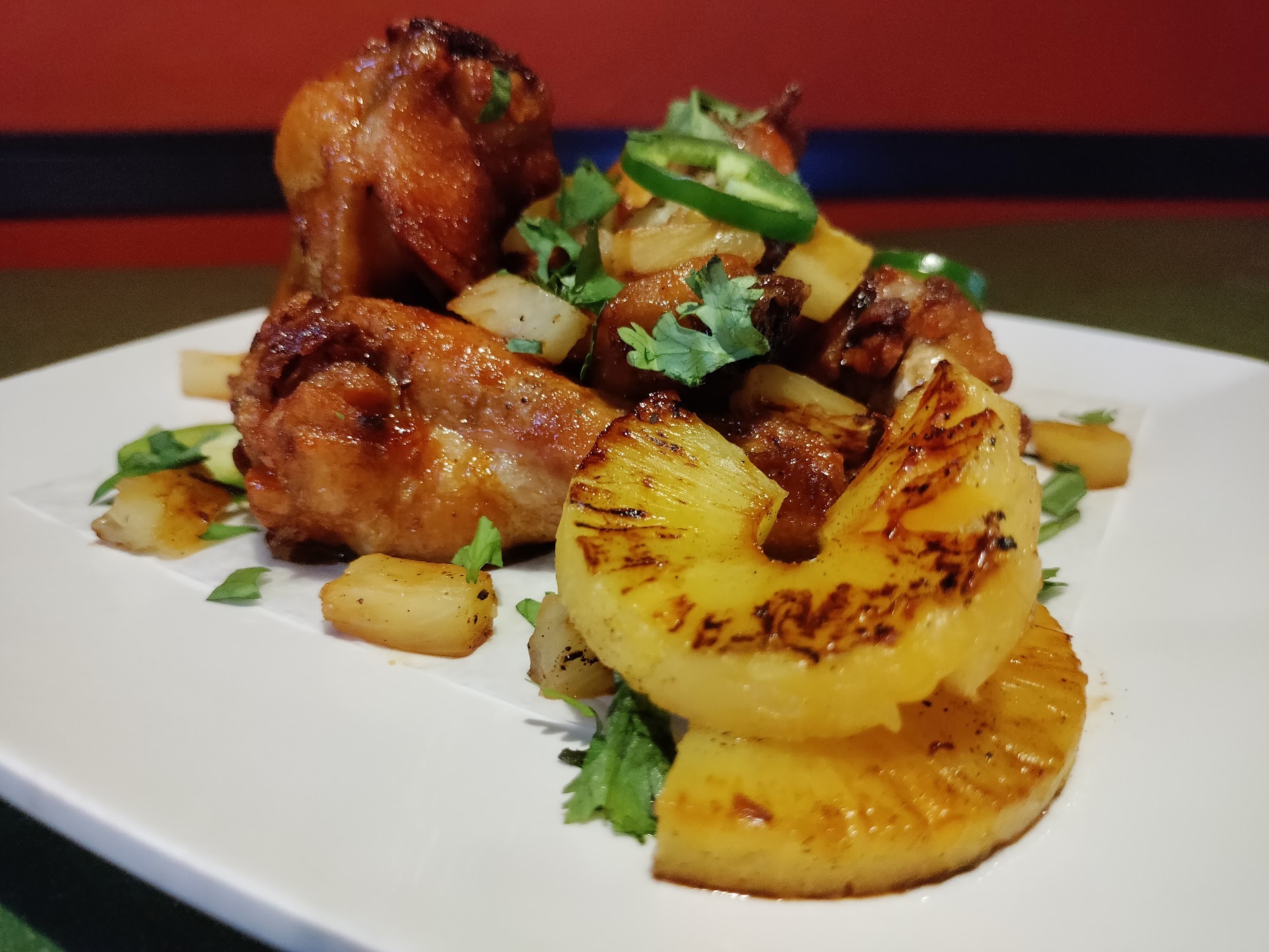 I visited for the first time during Portland Mercury's Wing Week 2021, to try the Bikini Bottom Wings (pictured). They were good! Baked in a pineapple marinade, flash fried, tossed in a poke sauce, and topped with cilantro.