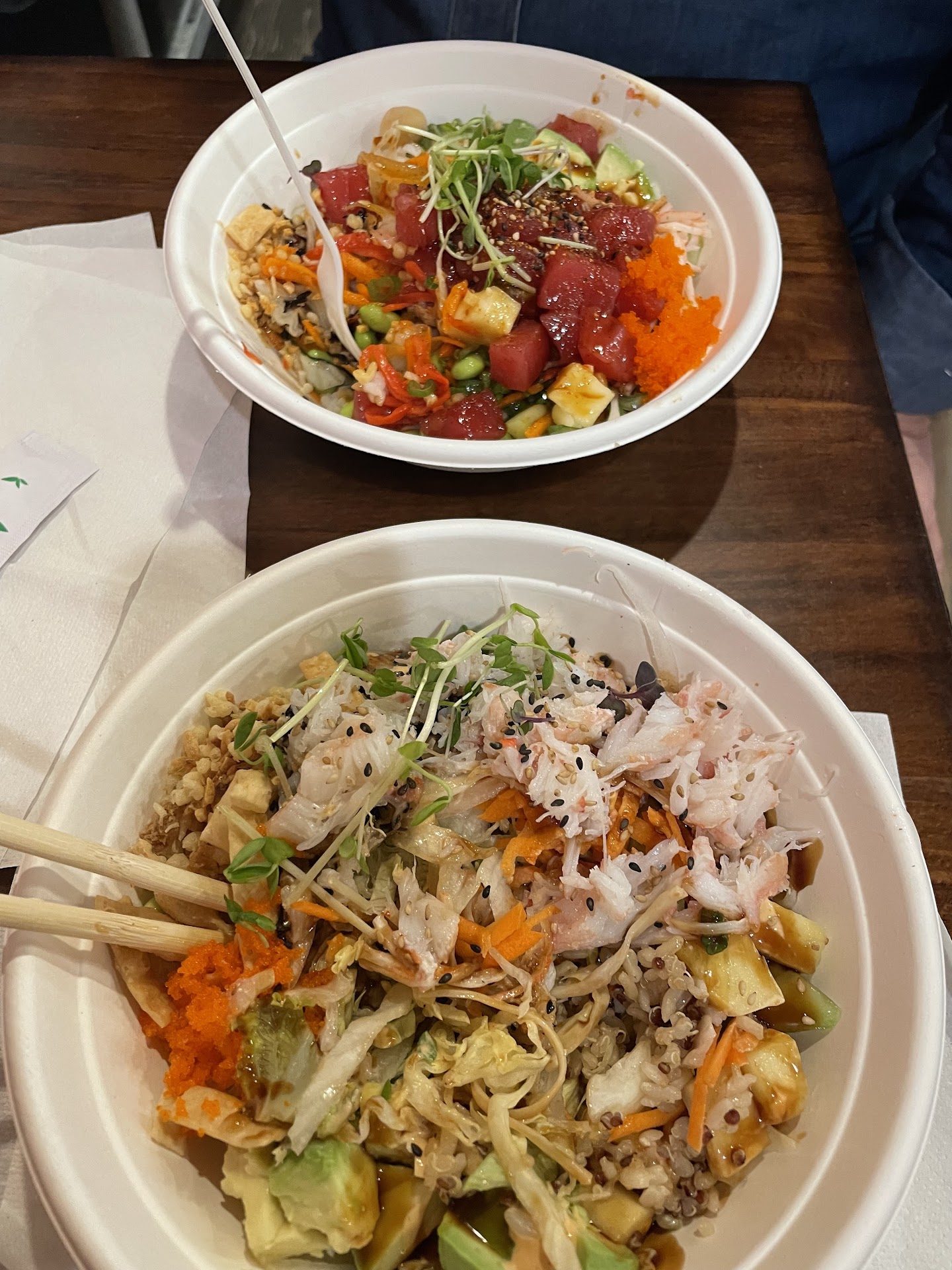 Everyone said the poke bowls were amazing and they drank all the boba tea without even me getting 1 sip. I guess it was good.