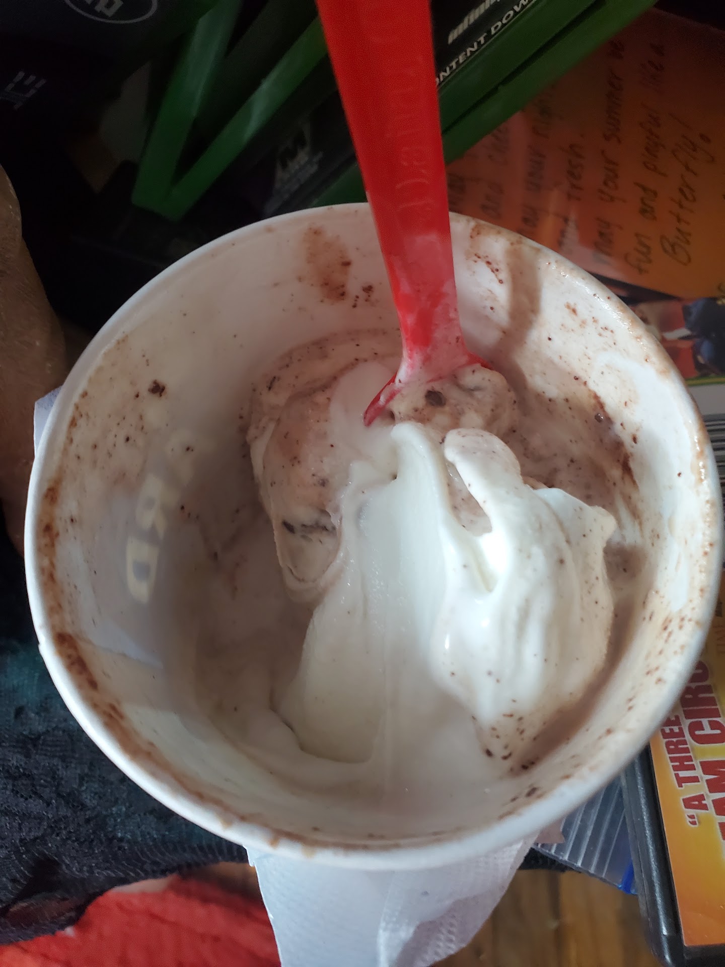 Read morePartner and I ordered ice cream inside (large berry blizzard and medium sundae with nuts) He got his blizzard quick, then employee went and worked drive thru. I watched multiple other people order food and ice cream from other employees, both inside and drive thru and receive it (corn dog meals, quarts of soft serve, etc). I looked at my order, which was still on their screen, lit up in red. I then went back to the counter and politely asked a different employee to cancel the remainder of my order and for a partial refund. The employee asked over her headset who took my order. I pointed out that it was still on their screen. The drive thru employee then walked away from his station and made my order while I was waiting for cash back. It was then brought up to the counter like nothing happened, until girl issuing the refund, repeated I no longer wanted it, and put it in freezer. Restroom was also in poor cleanliness. I run a restaurant kitchen downtown. Based on confusion of orders being half way completed, similar tasked orders being fulfilled before others, and lack of attention to order screens, I place the blame on management, not the employees, for lack of training and management of...