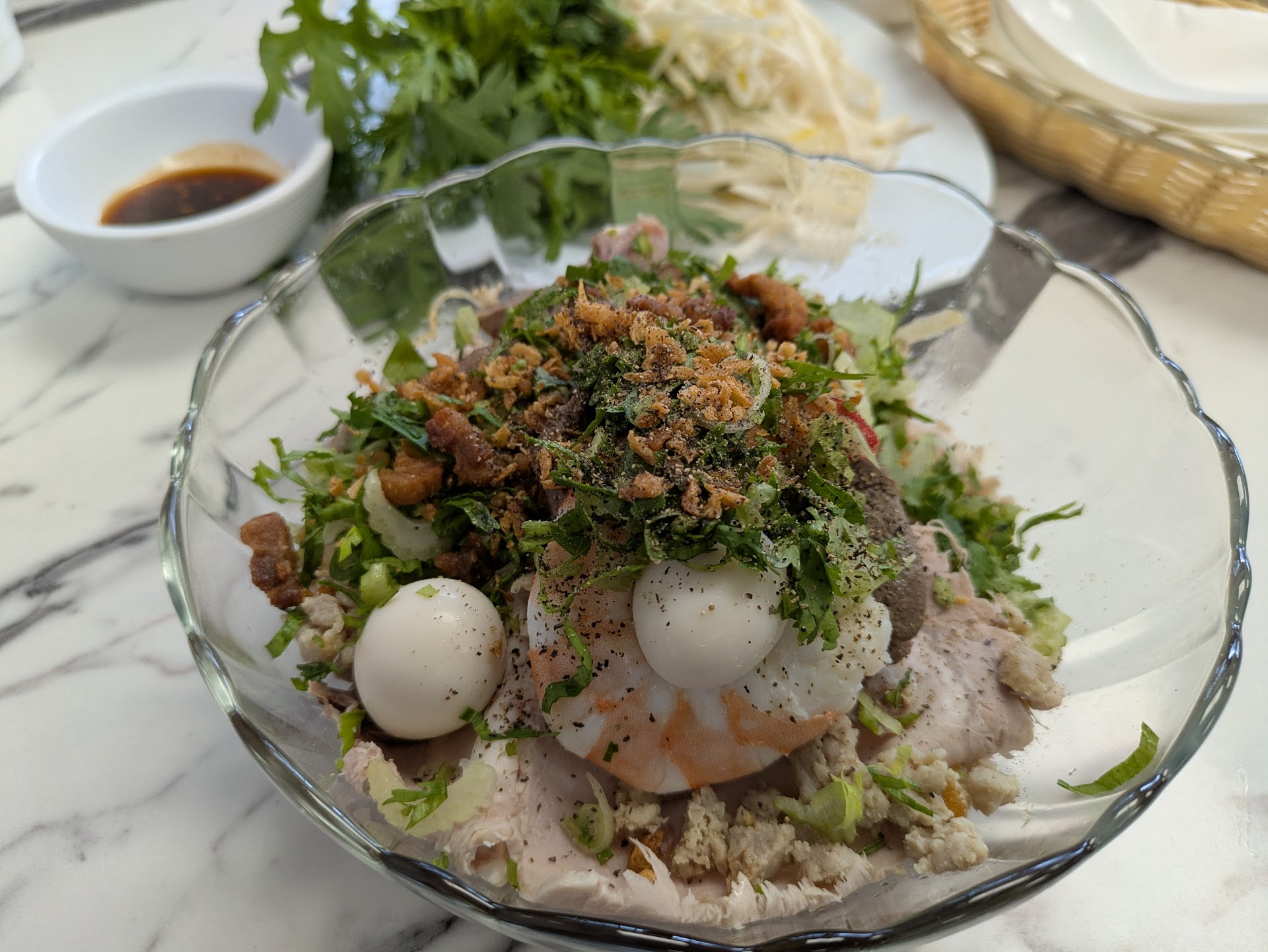 Ca kho - well seasoned, went so amazingly with the bamboo shoots. The sauce it was braised in was so punchy and tasty. They added a ton of green onions on top, exactly the way I like it. And I added some of the fish sauce from the pork chop plate, so so good!